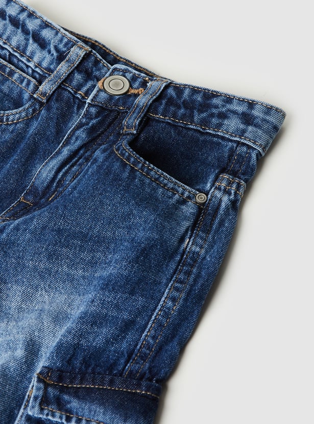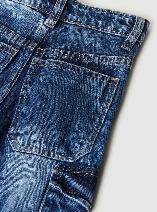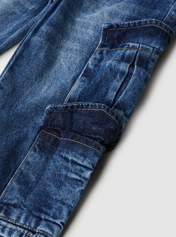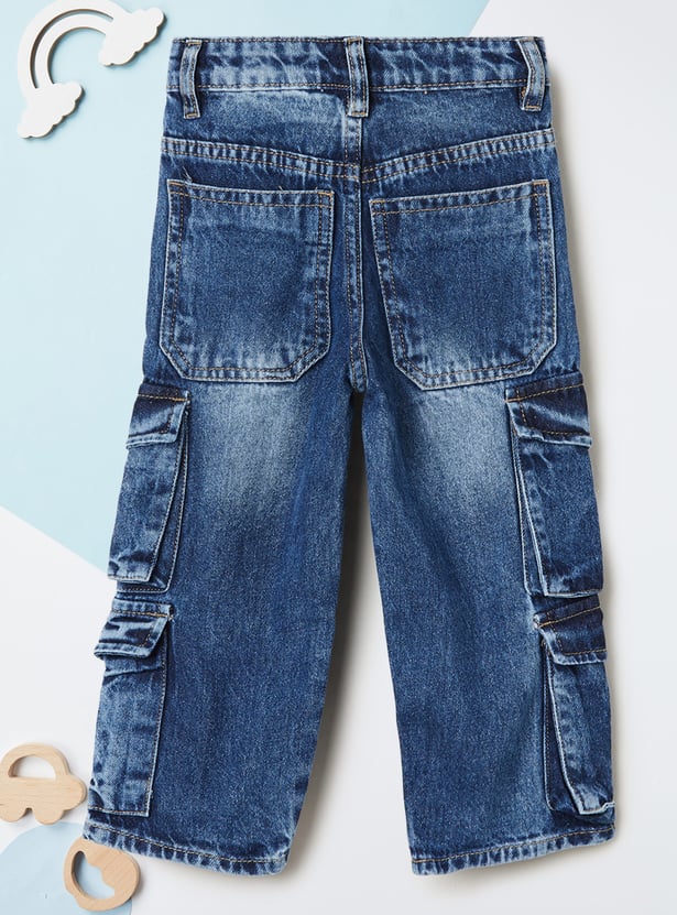 These washed cargo jeans offer a cool, relaxed vibe with a button closure and belt loops for a customizable fit. The cargo pockets add extra practicality and style, while the washed finish gives them a worn-in, casual look.