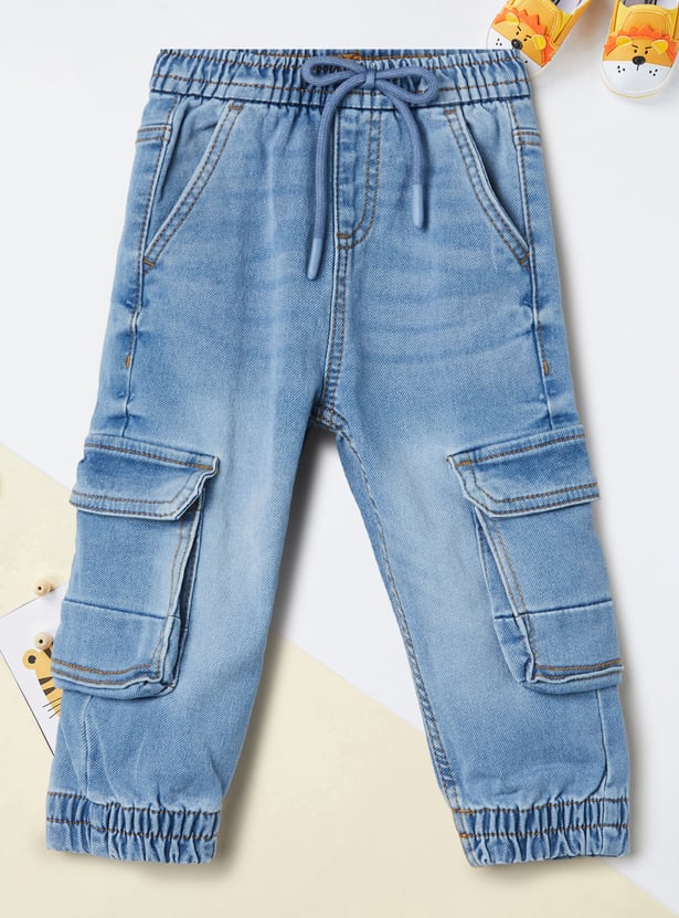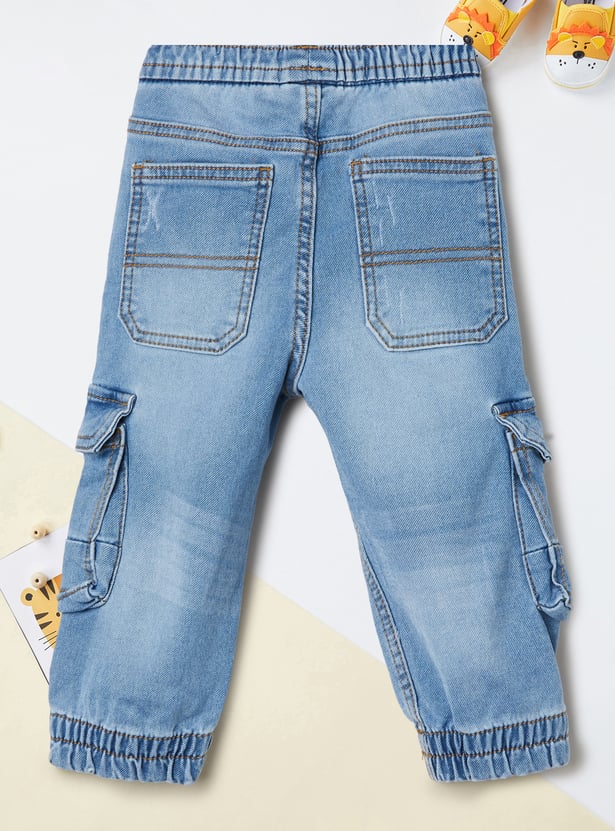 Blend utility and comfort with these washed cargo jogger jeans, featuring a drawstring closure and multiple pockets for a rugged yet relaxed vibe.