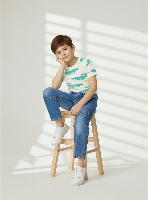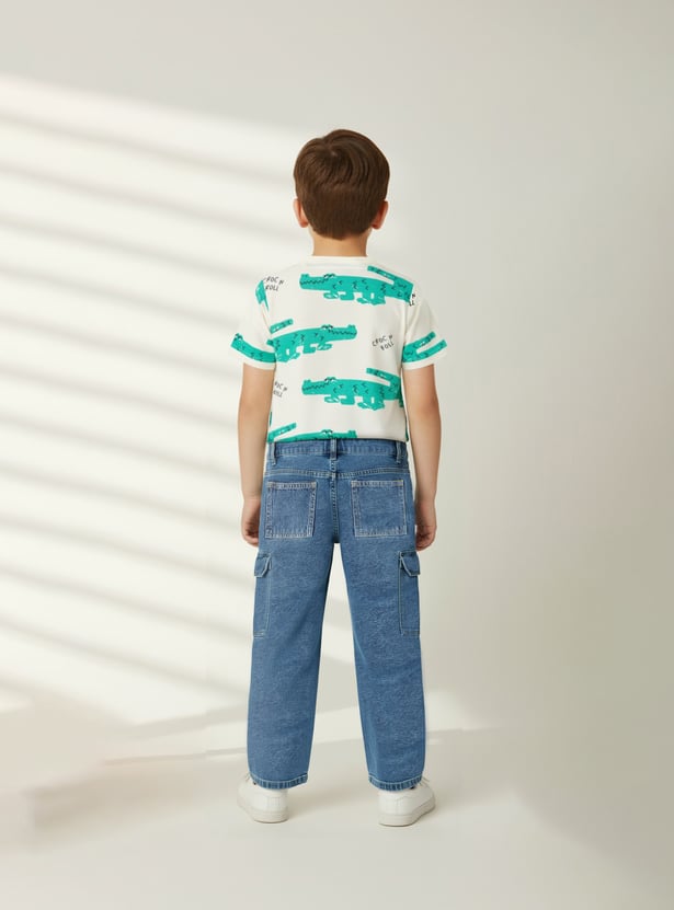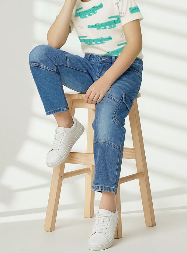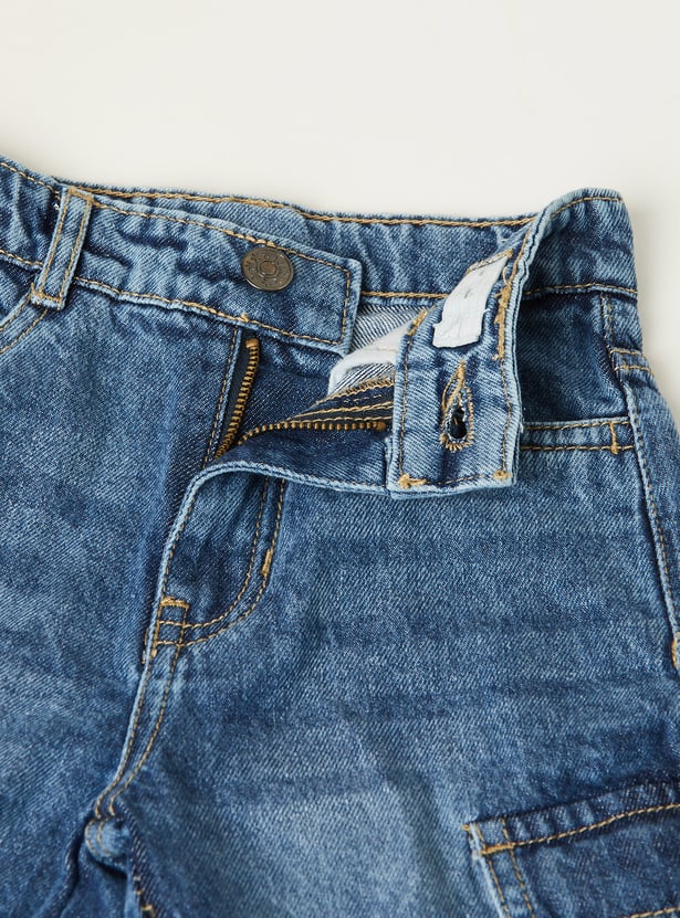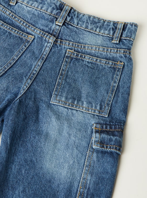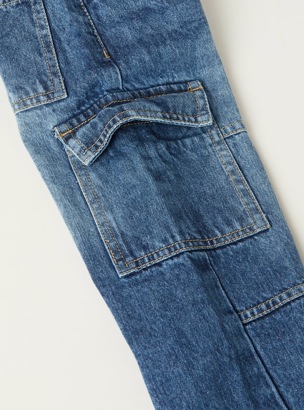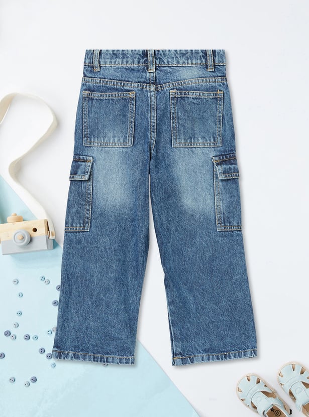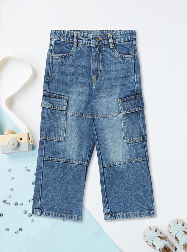Upgrade your casual style with these washed cargo jeans, designed with a button closure, belt loops, and multiple pockets for a utility-inspired look.