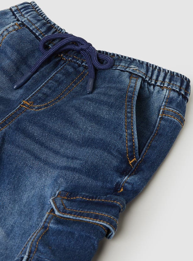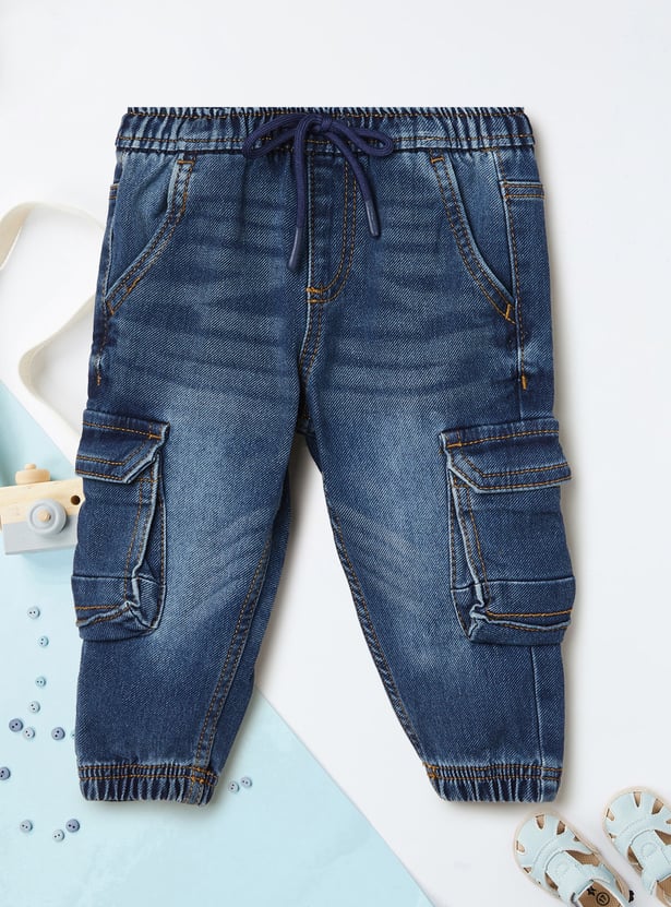 Step up your casual game with these washed mid-rise denim cargo joggers. Designed with a drawstring closure and multiple pockets, they combine utility with laid-back style for everyday comfort.