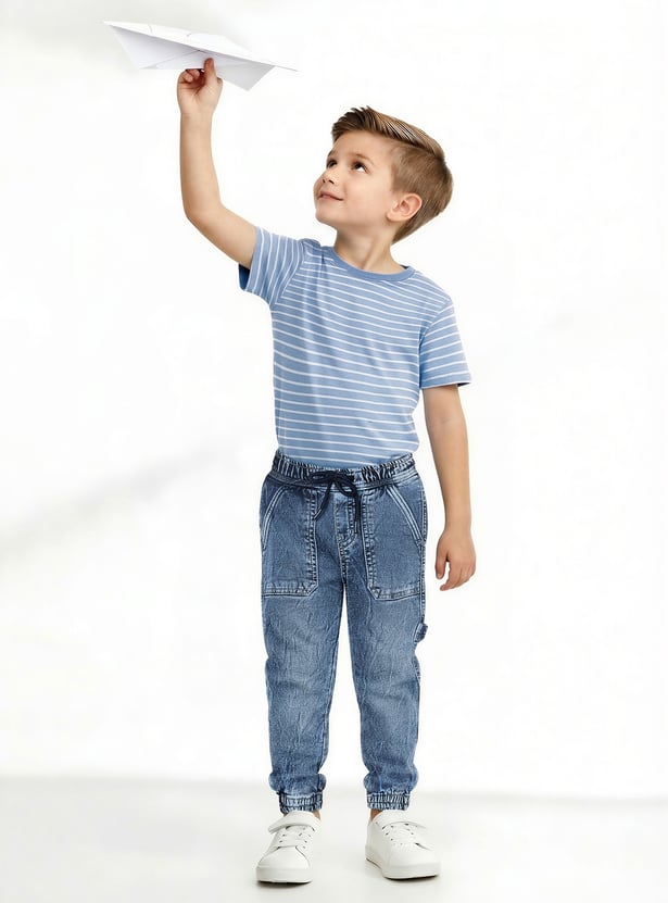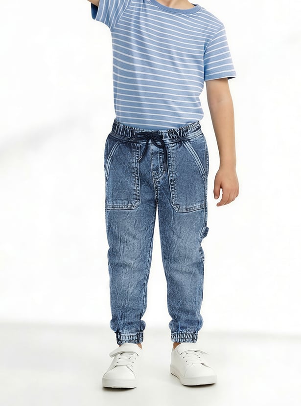 Upgrade your casual essentials with these washed denim joggers. Featuring a drawstring closure for a secure fit and functional pockets for everyday convenience, they combine the laid-back comfort of joggers with the rugged appeal of denim.