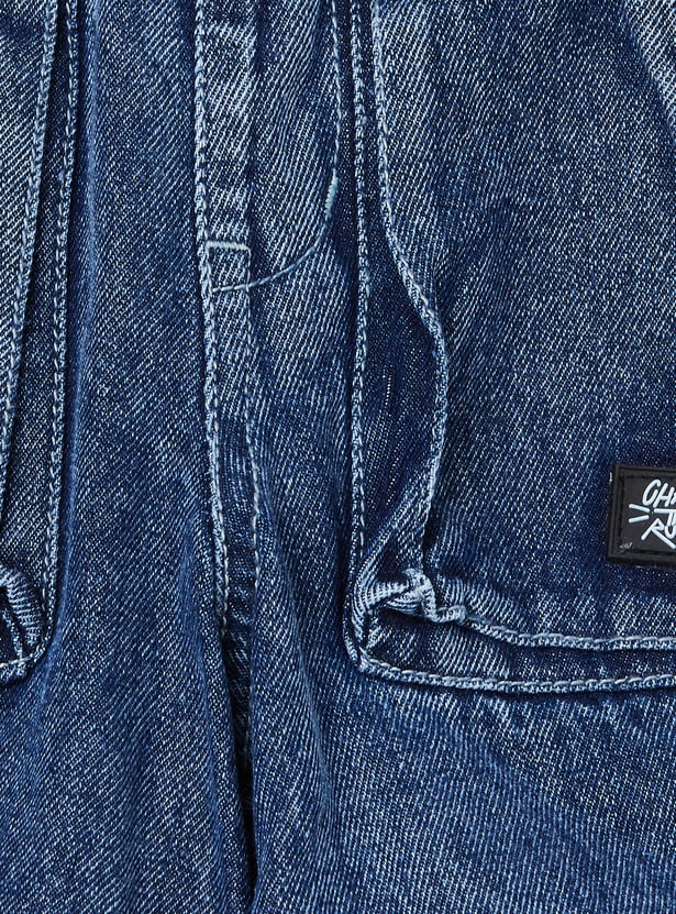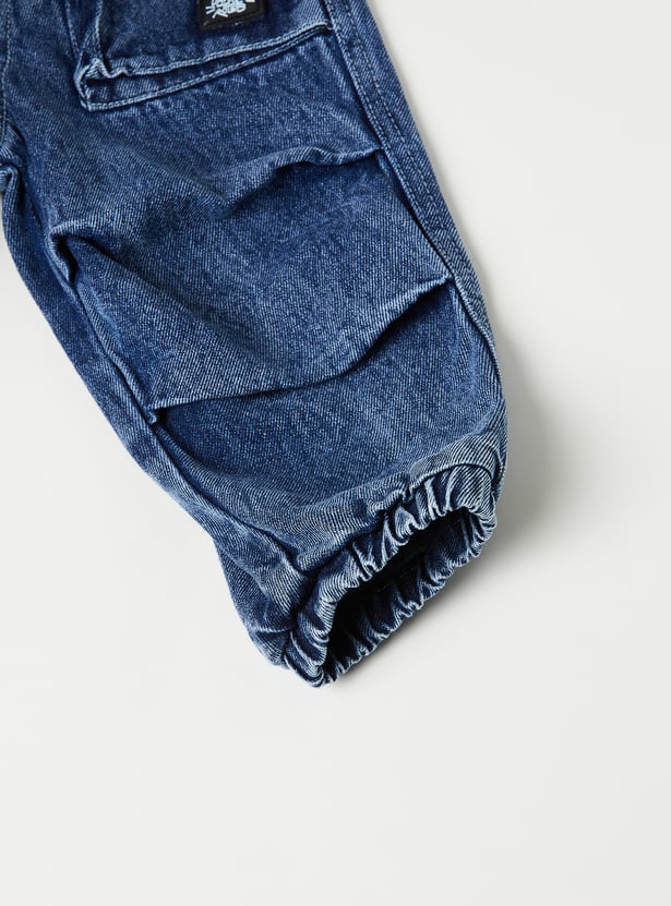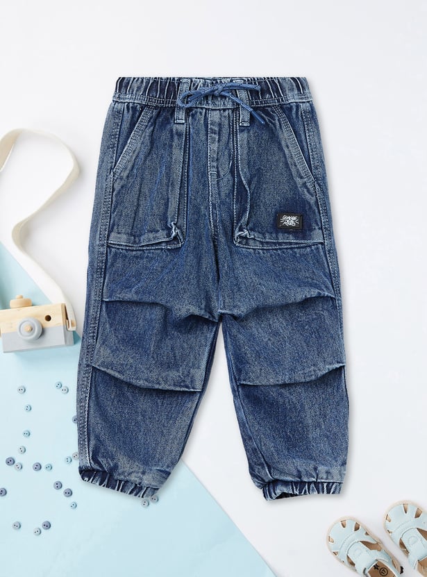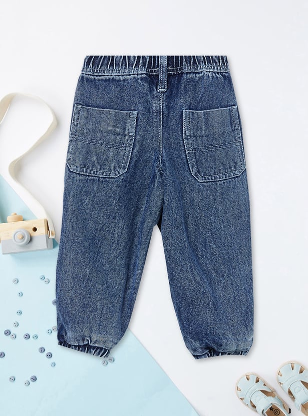 Trendy and comfortable, these washed denim joggers feature a drawstring closure and practical pockets, combining the relaxed fit of joggers with the classic appeal of denim for a versatile everyday look.
