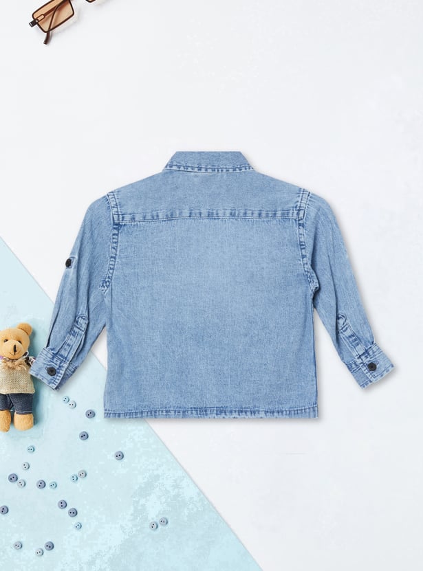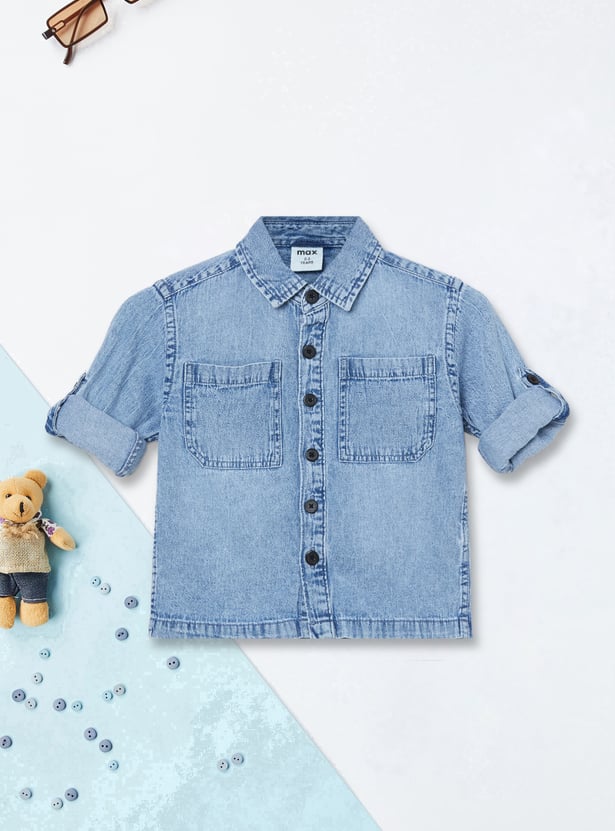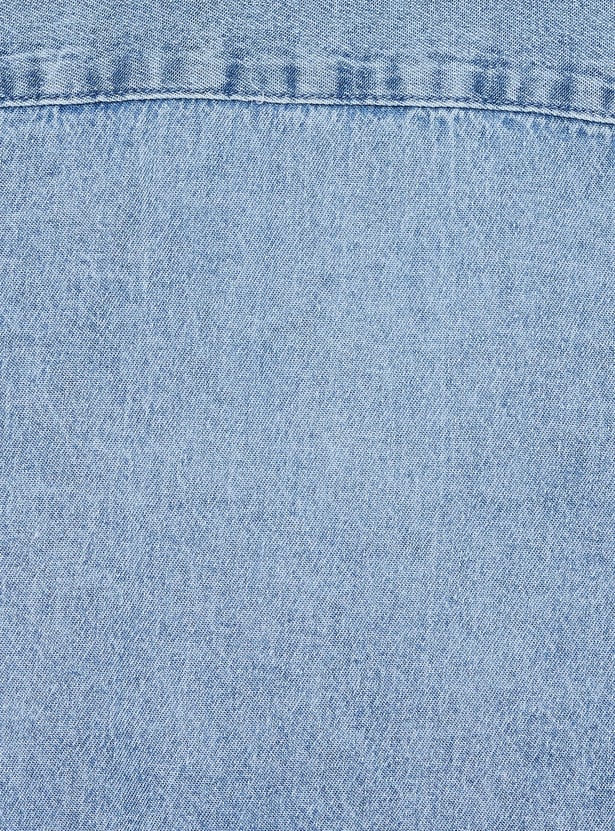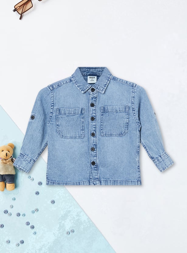 Add a rugged yet stylish touch to your wardrobe with this washed denim shirt. Featuring a spread collar, button closure, full sleeves, and functional patch pockets, it blends classic design with everyday utility.