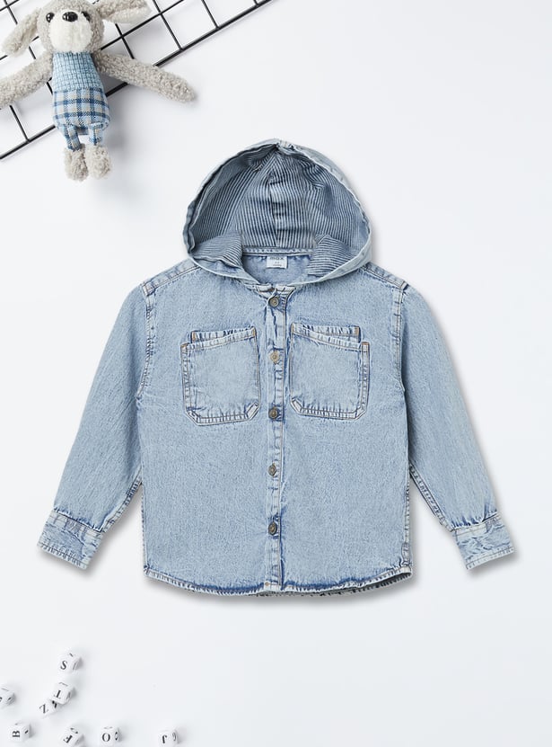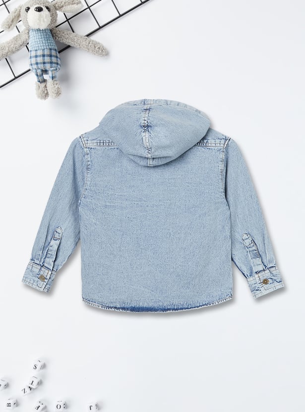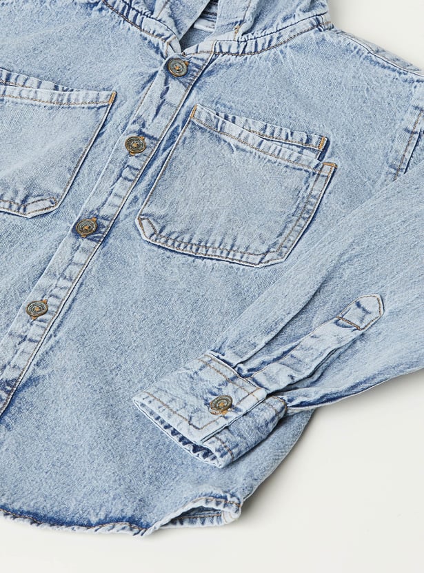 Boys Washed Hooded Oversized Denim Shirt