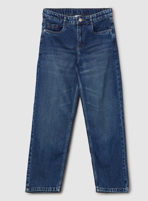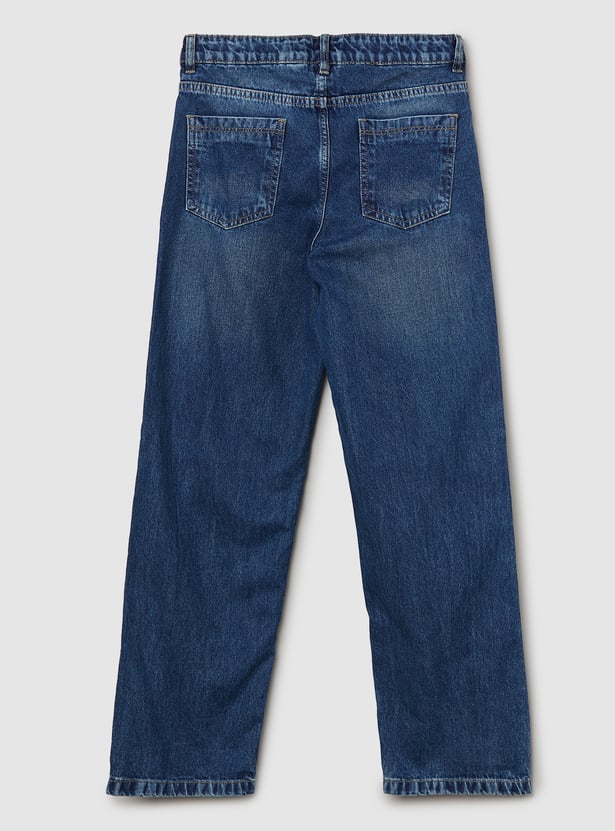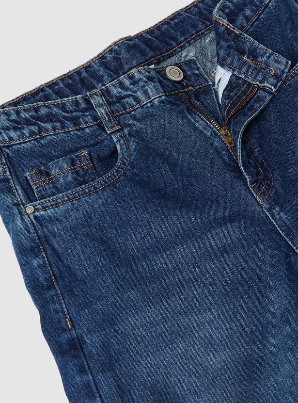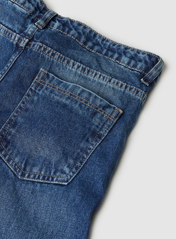 These washed jeans combine a classic design with a modern edge. Featuring a button closure with belt loops and five functional pockets, they offer both style and practicality. The washed finish adds a trendy touch, making them a go-to for playtime.