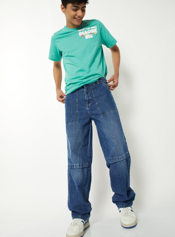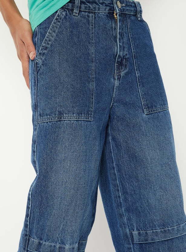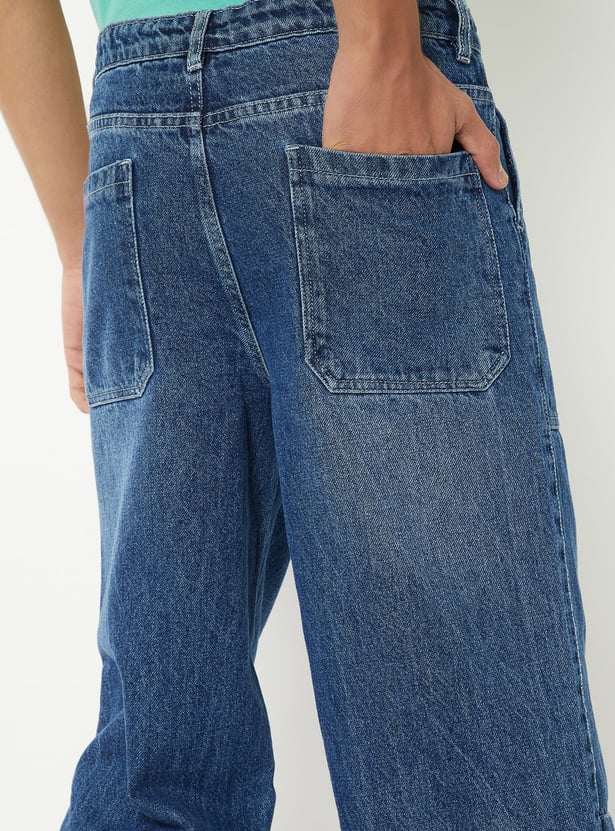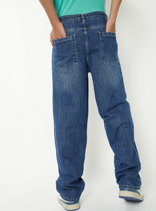 These washed jeans bring a lived-in look with timeless appeal. Designed with a classic button closure and functional pockets, they offer comfort and effortless style for everyday wear.