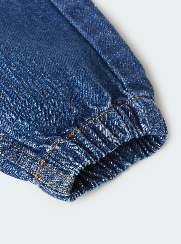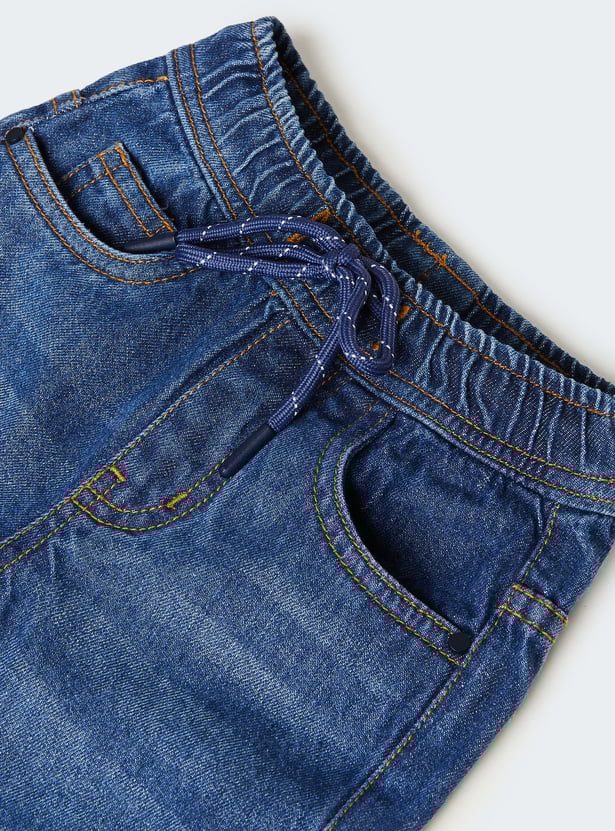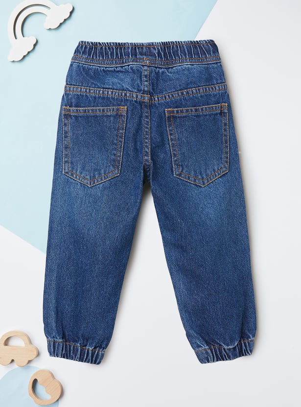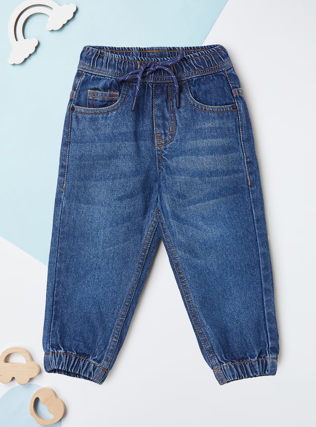 These washed jogger jeans combine the ease of joggers with the rugged look of denim. Featuring a drawstring closure and five pockets, they offer both style and functionality.