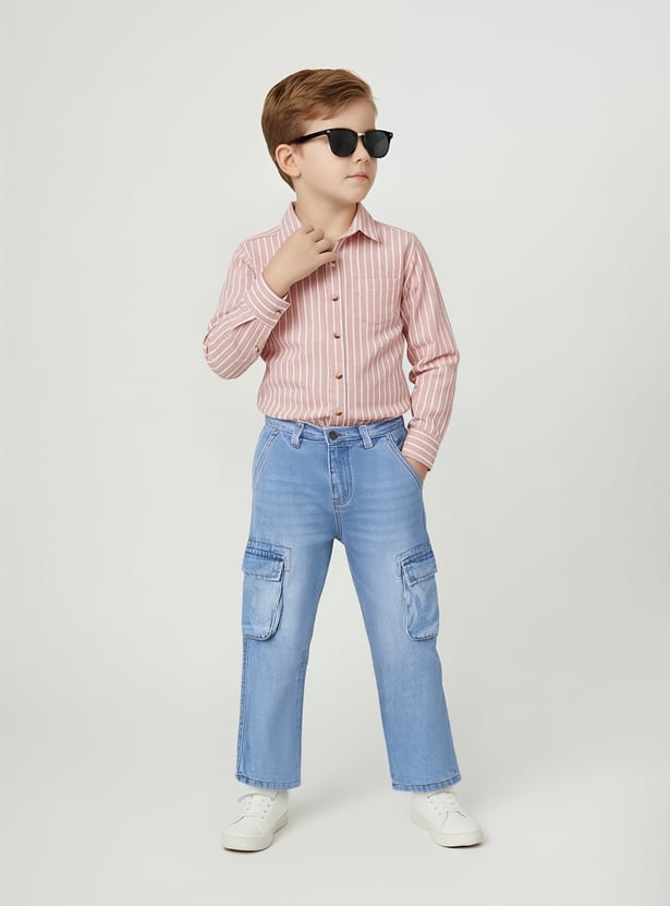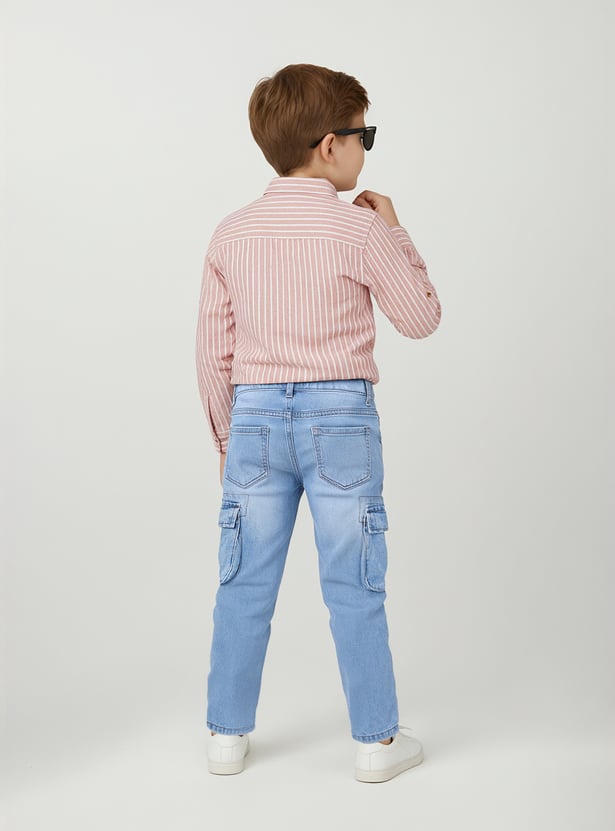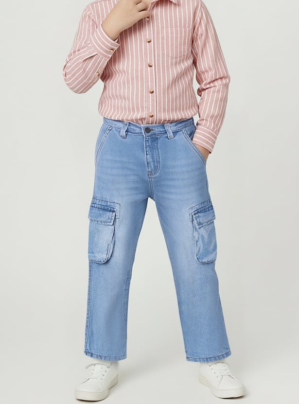 These washed loose fit cargo jeans blend classic denim with utility-inspired details. Featuring a button closure, belt loops, and multiple pockets, they offer a relaxed, functional fit with a worn-in edge.