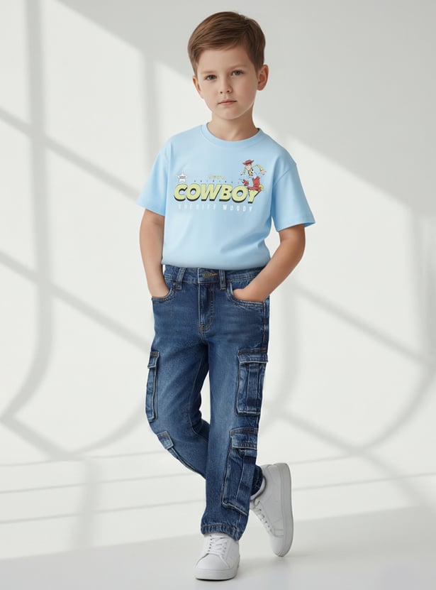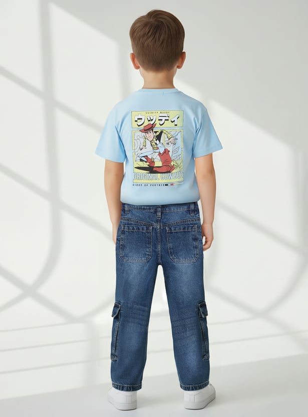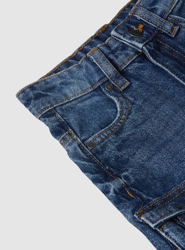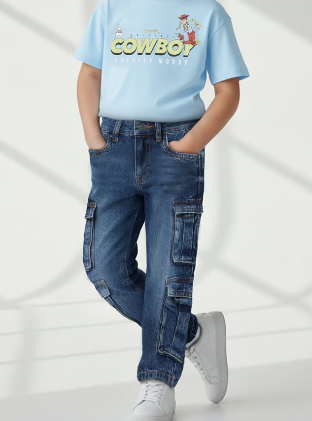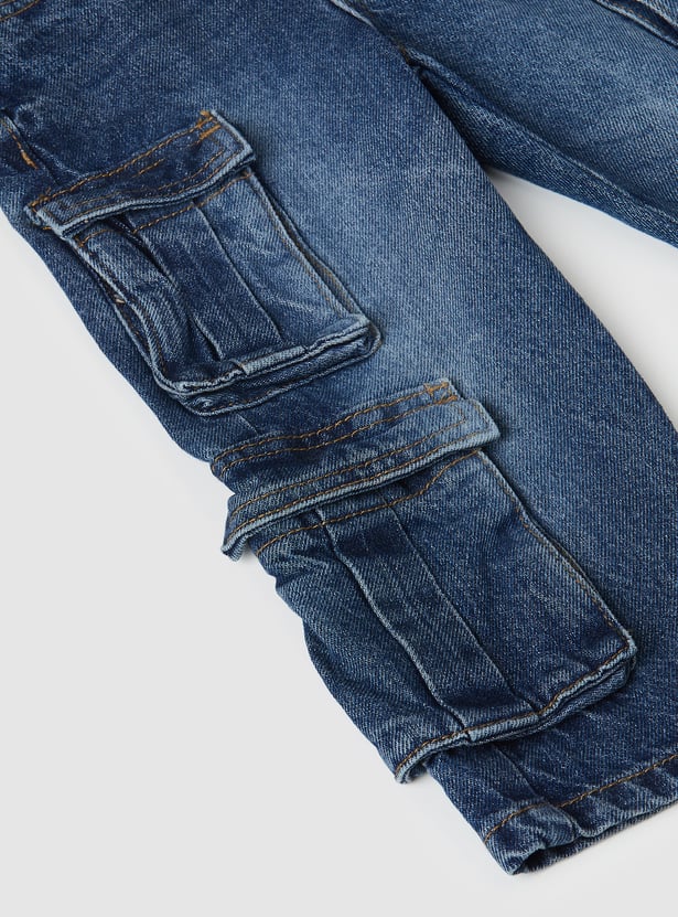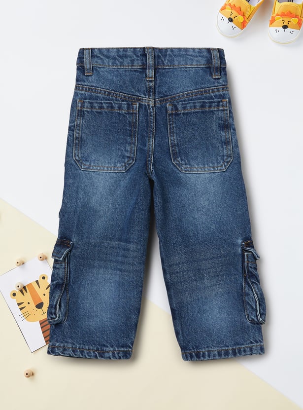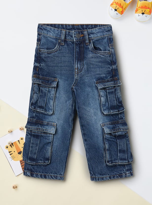 Step up your casual style with these washed loose fit denim cargos, featuring a button closure, belt loops, and multiple pockets for a rugged yet functional look.
