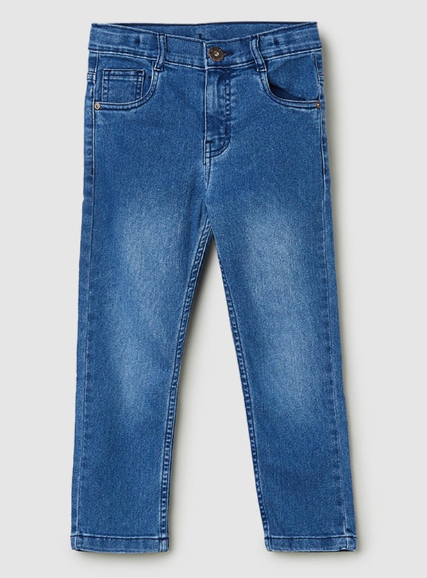 Your kid's favourite for all seasons, these jeans boast a cute slim-fit profile. Complete with a belt loop waist and 5 pockets, they offer both style and functionality. The washed surface adds a trendy touch, making them perfect for any occasion.