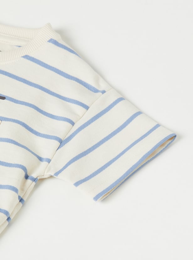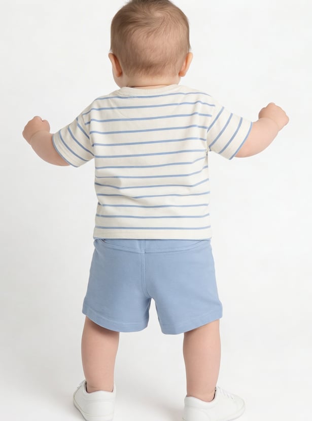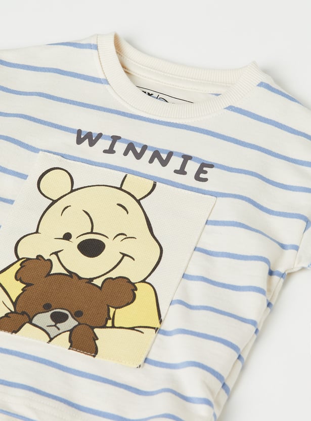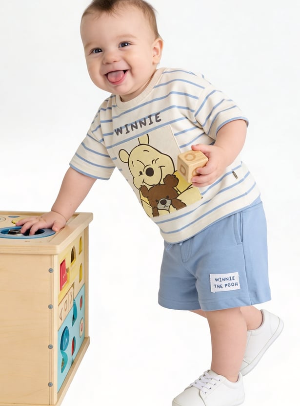 Keep playtime cosy with this Winnie The Pooh shorts set, featuring a crew-neck T-shirt with half sleeves and matching shorts with a drawstring closure and pockets.