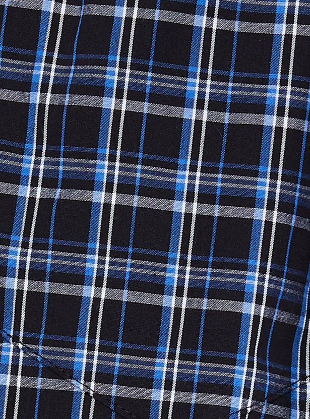 Designed with bold checks all over, this pair of boxer shorts is enhanced with an elastic waistline. Tailored from a soft fabric, this pair shall ensure superior comfort all day long.