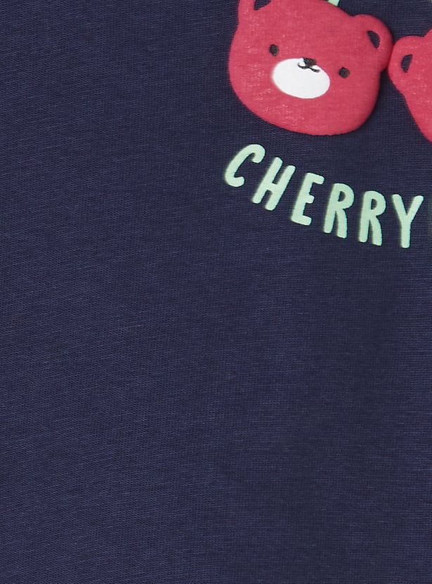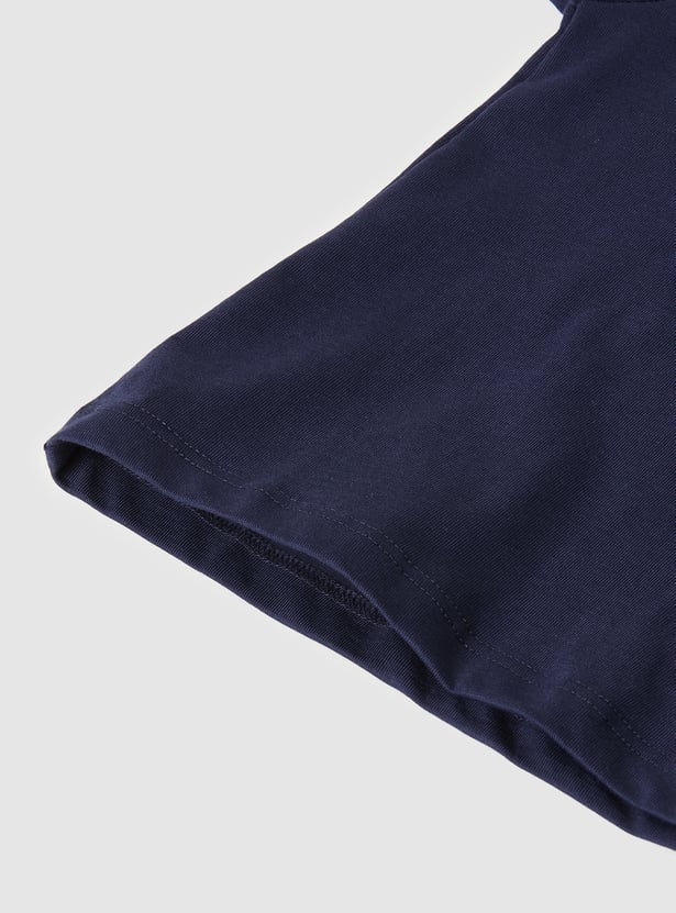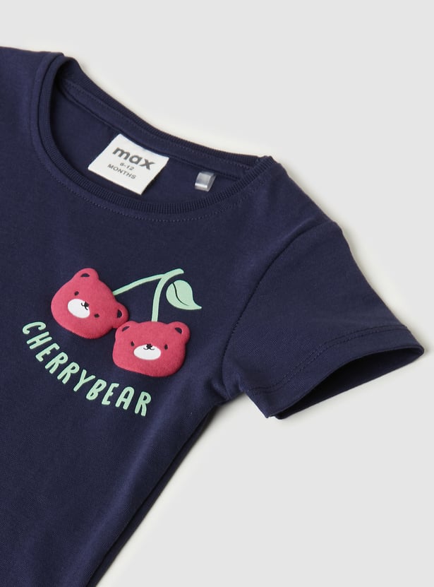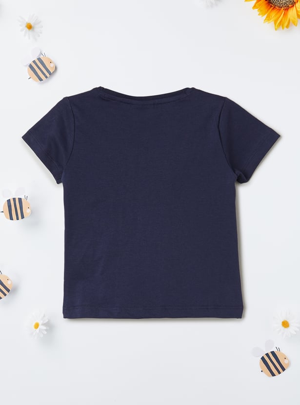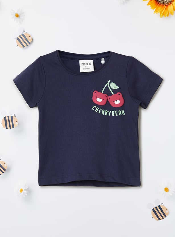 This appliqued t-shirt features a classic round neck and half sleeves, offering a comfortable and relaxed fit. The applique adds a fun, stylish touch, making it a versatile piece for casual outings.
