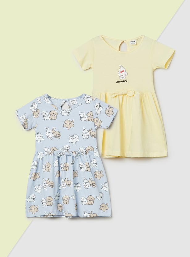 A versatile duo, this assorted dress pack includes two stylish pieces designed with a classic round neck and half sleeves. Each dress features a button closure, offering ease and comfort while maintaining a chic, everyday look.