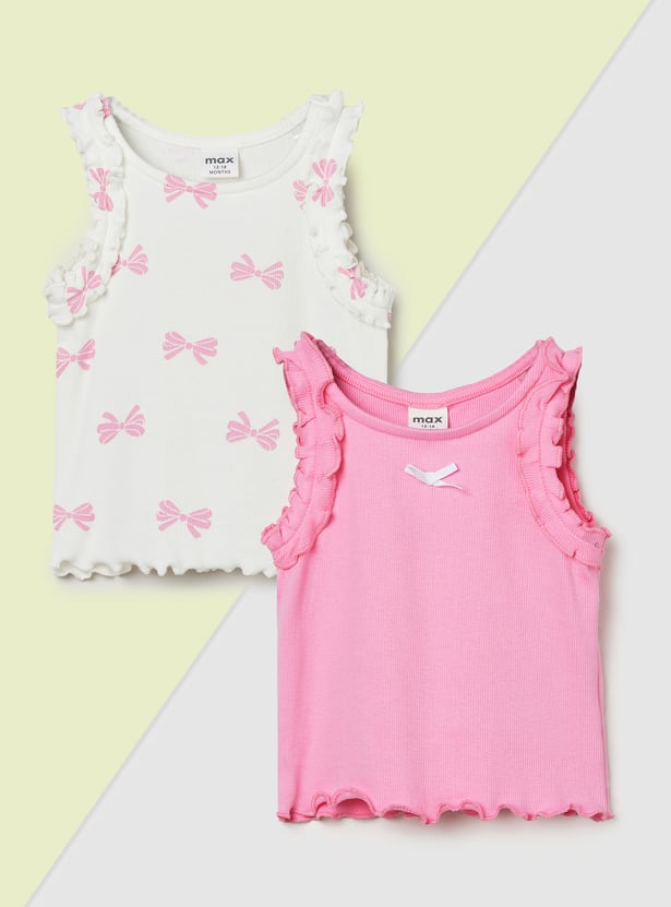 This assorted tops in a pack of 2 feature a chic round neck and sleeveless design, perfect for layering or wearing on its own.