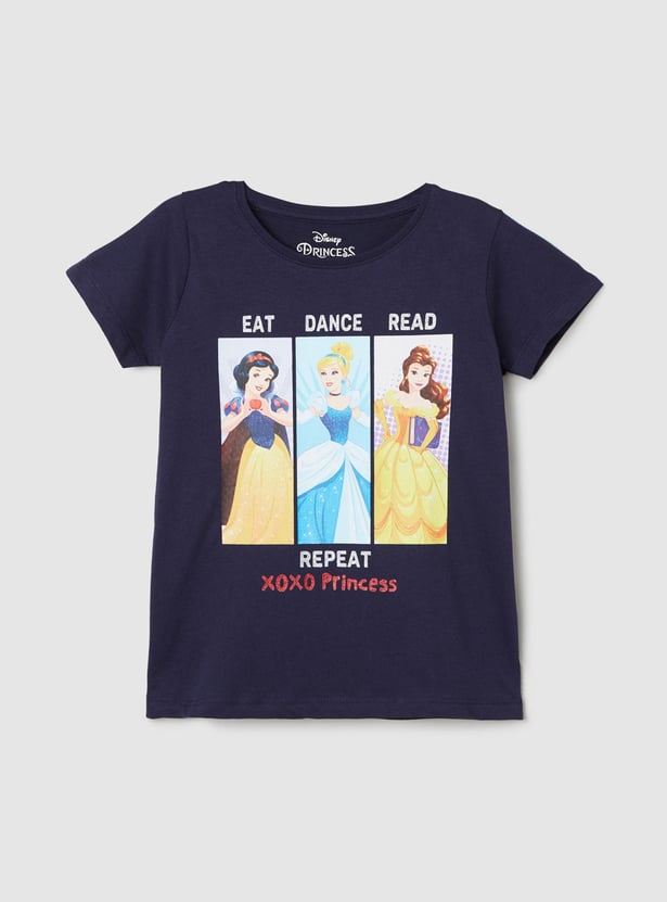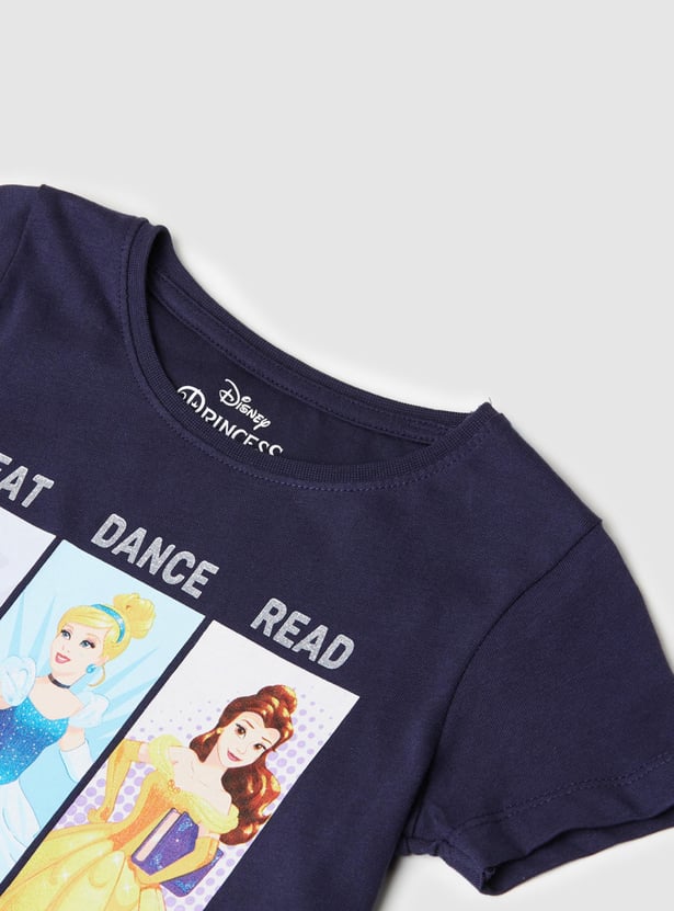 Upgrade her basic collection with this t-shirt featuring a Disney princess-themed print, round neckline, and short sleeves.