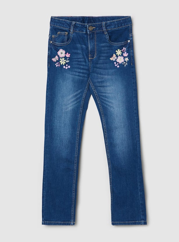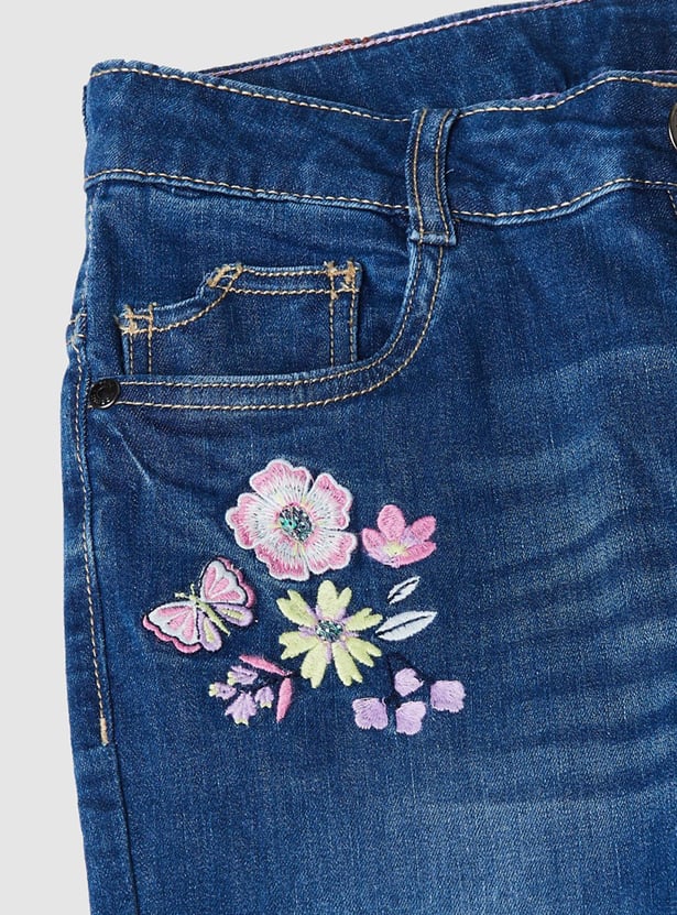 Girls Embroidered Slim Fit Jeans