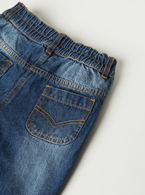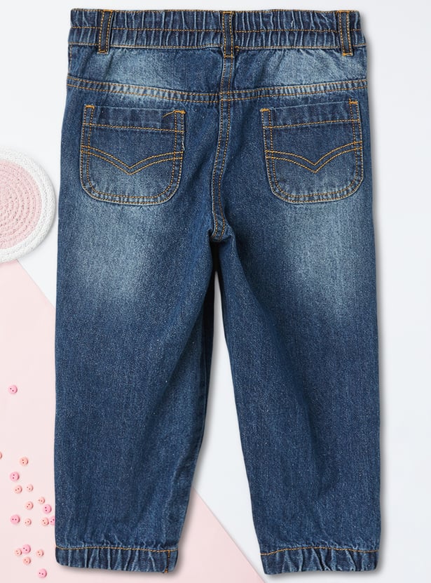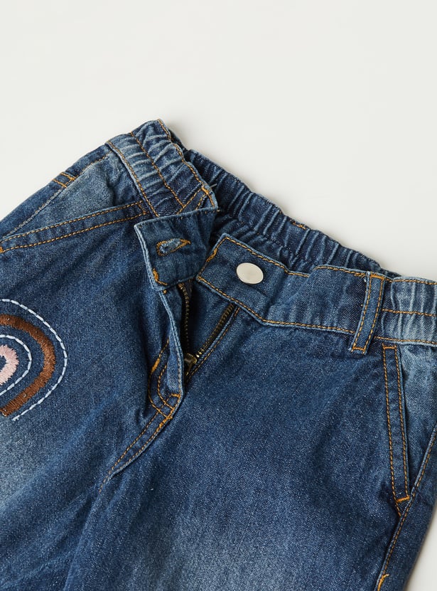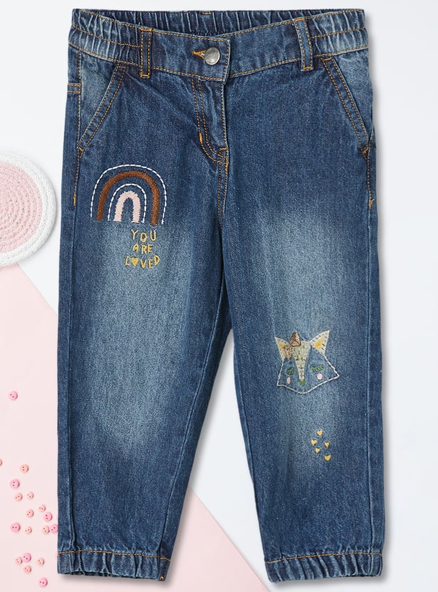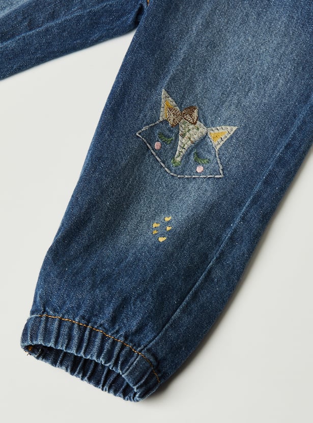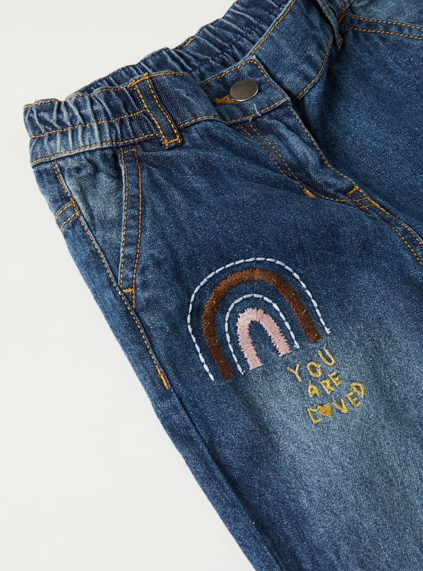 This pair of jogger jeans is designed with an embroidered surface, a stone washed effect, pockets, full-length construction, and an elasticated waistband with button closure for that superior comfort.