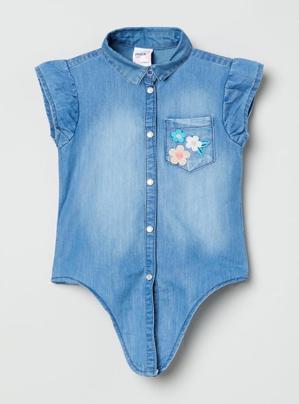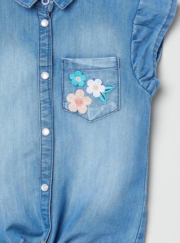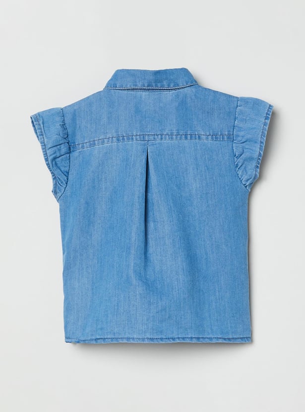 Flaunt a stylish accent and re-design your wardrobe with this top. it is detailed with a collared neckline, short sleeves, and a tie-up at the hemline to showcase a cool look.
