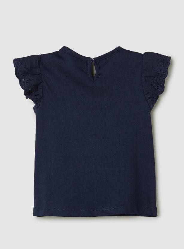 Girls Embroidered Top with Schiffli Sleeves