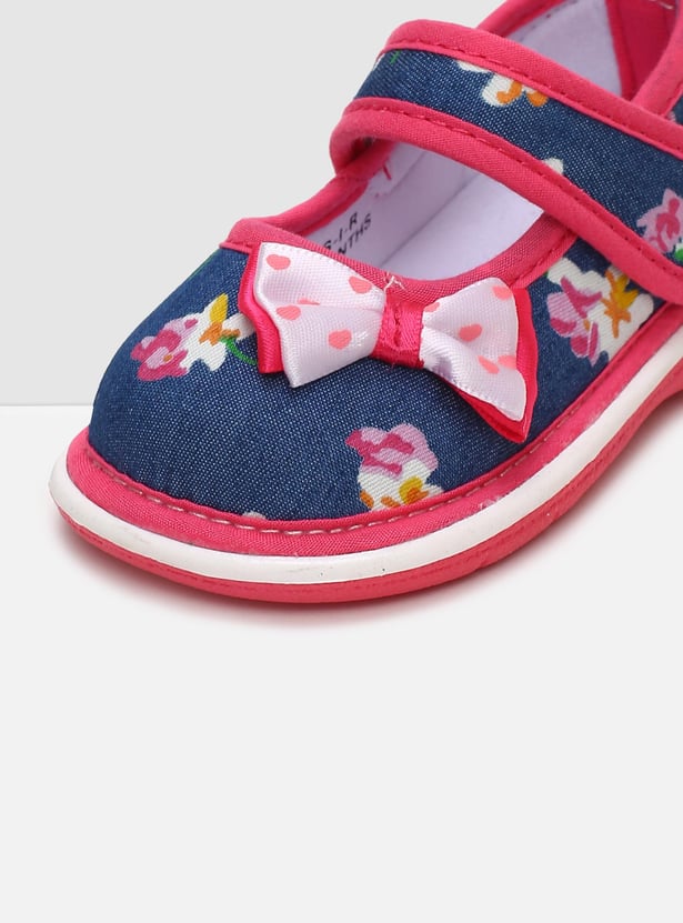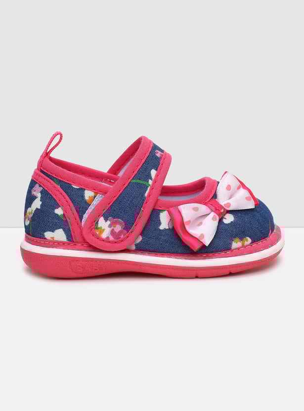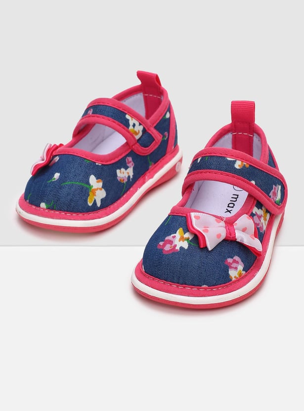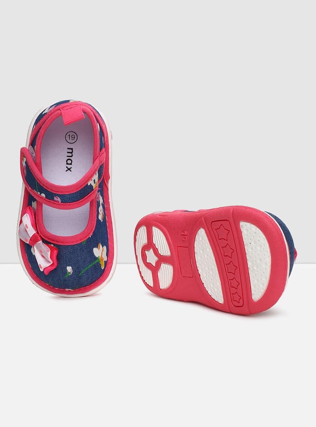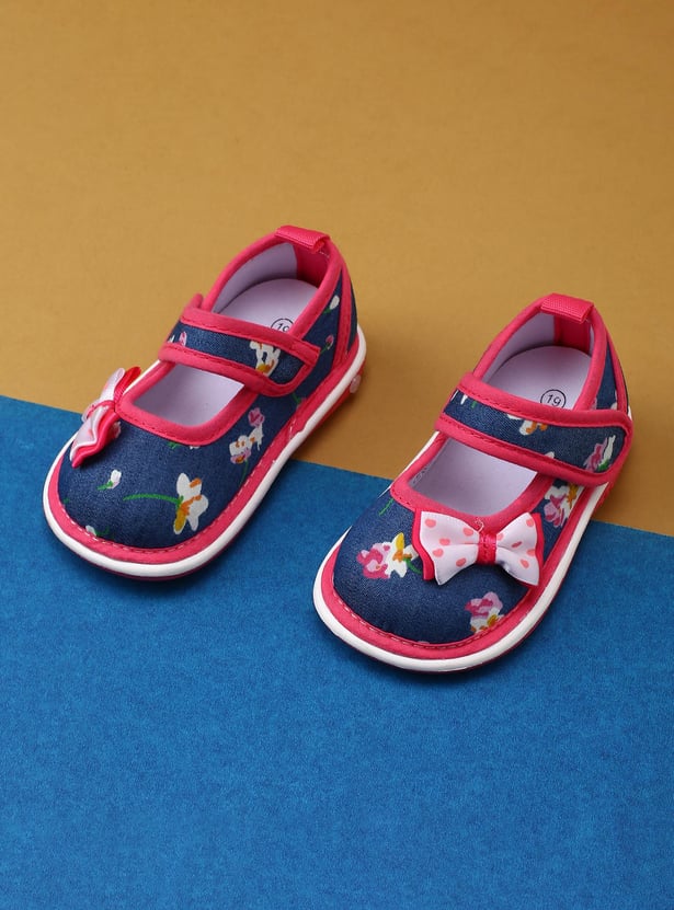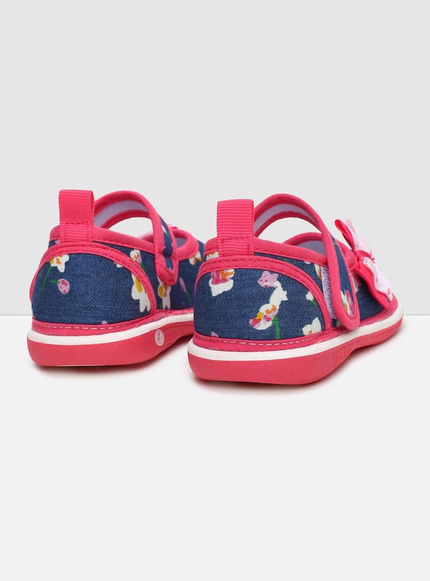 Giddy up her grace in stylish functionality with these printed casual shoes. Upgraded with slip-on wearability, velcro closure, and pretty printed design, this is your girl's everyday fashion must-have.