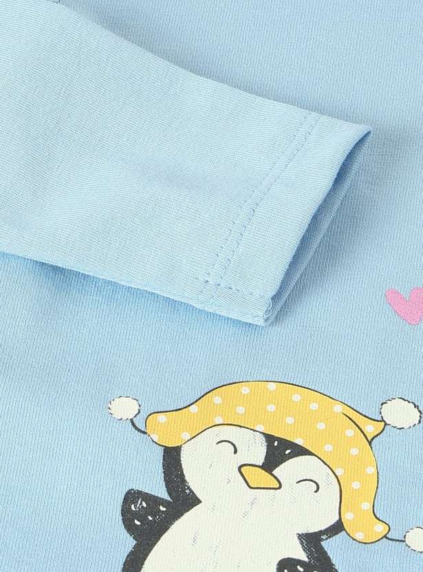 Add a splash of fun to your kid's casual wardrobe with this playful T-shirt. Featuring a vibrant graphic print, a classic round neck, and cool full sleeves, this tee is perfect for adventurous days and endless play.