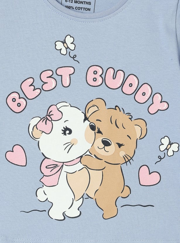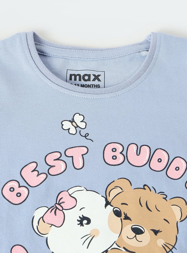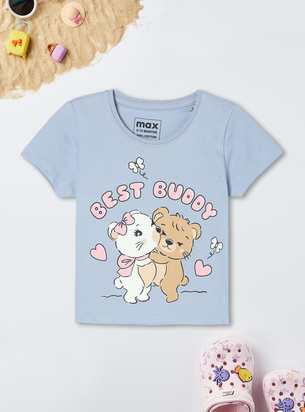 Get your little one vacation-ready with this comfortable and stylish graphic print T-shirt. Featuring half sleeves and a round neck, it offers a fun design, perfect for adventures and playtime.