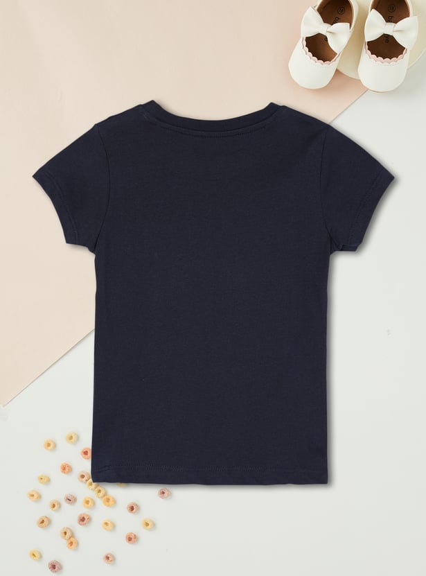 Transform your child's wardrobe with this comfortable and stylish graphic-printed T-shirt. Featuring half sleeves and a classic round neck, it's the perfect choice for adding a trendy touch to their everyday outfits.