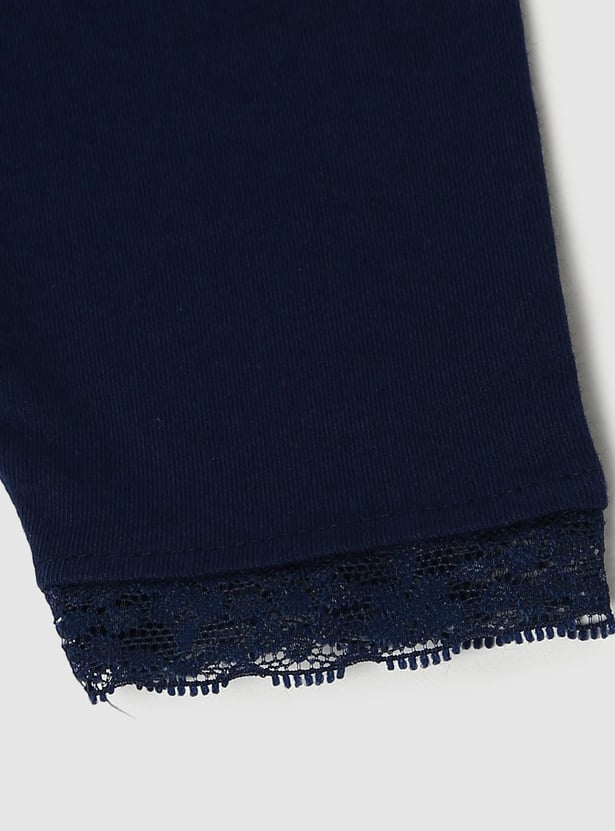 Girls Lace Hem 3/4th Leggings