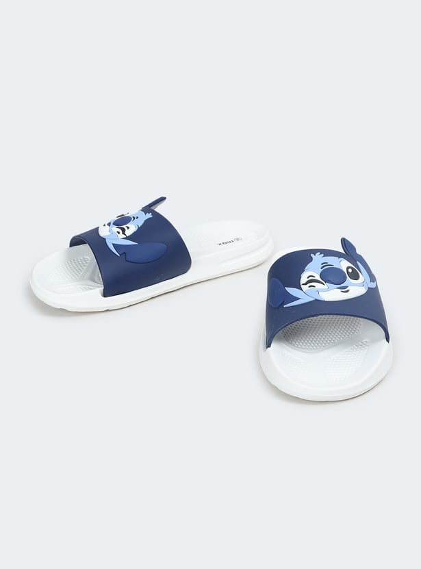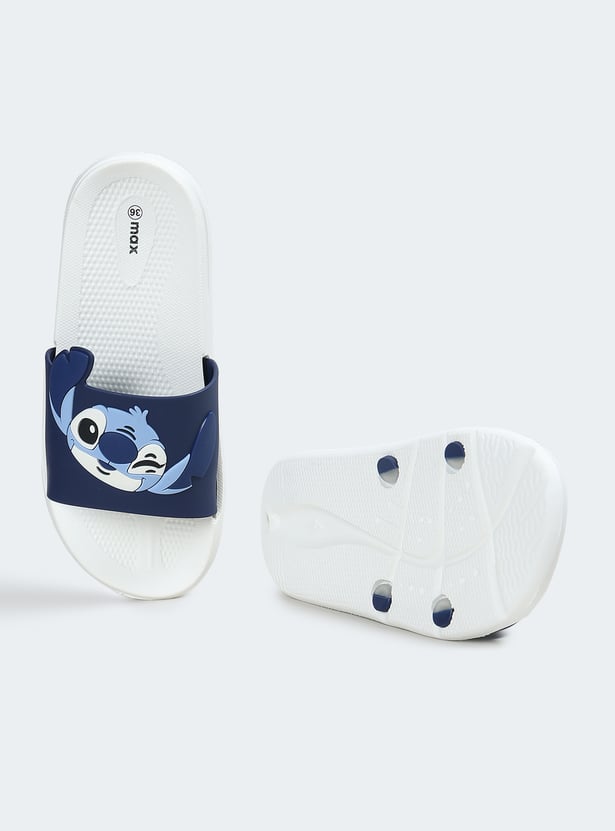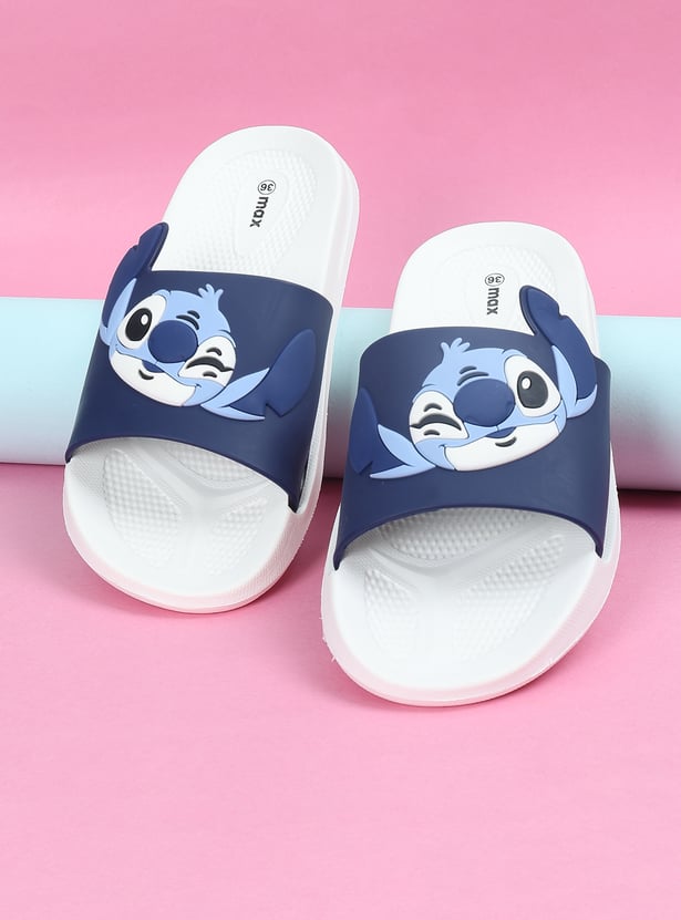 These adorable Lilo & Stitch slides for girls bring a playful Disney touch to her casual look. Designed with a textured footbed and slip-on style, they offer all-day comfort and ease, perfect for home, poolside, or casual outings.