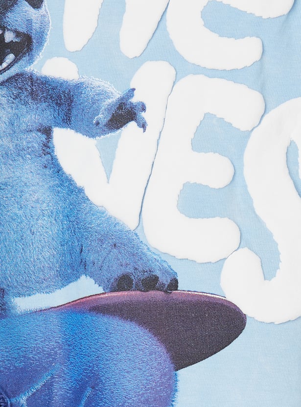 Add a dose of Disney magic to your wardrobe with this Lilo & Stitch print t-shirt, featuring a classic round neck and comfy half sleeves. Perfect for showing off your playful side with a touch of nostalgia.
