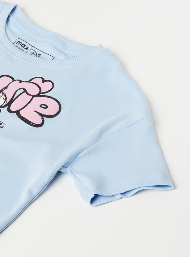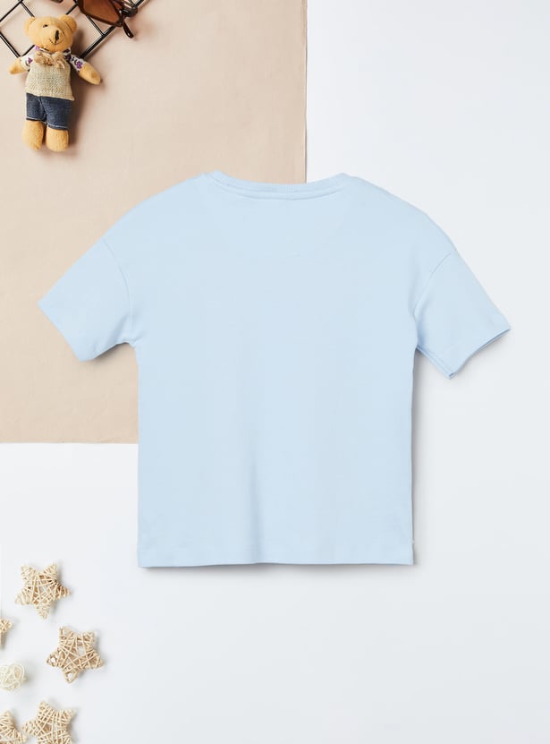 Stay effortlessly cool in this printed oversized T-shirt, designed with a round neck, bow applique, and half sleeves for ultimate comfort. Perfect for a relaxed, casual look with a bold touch.