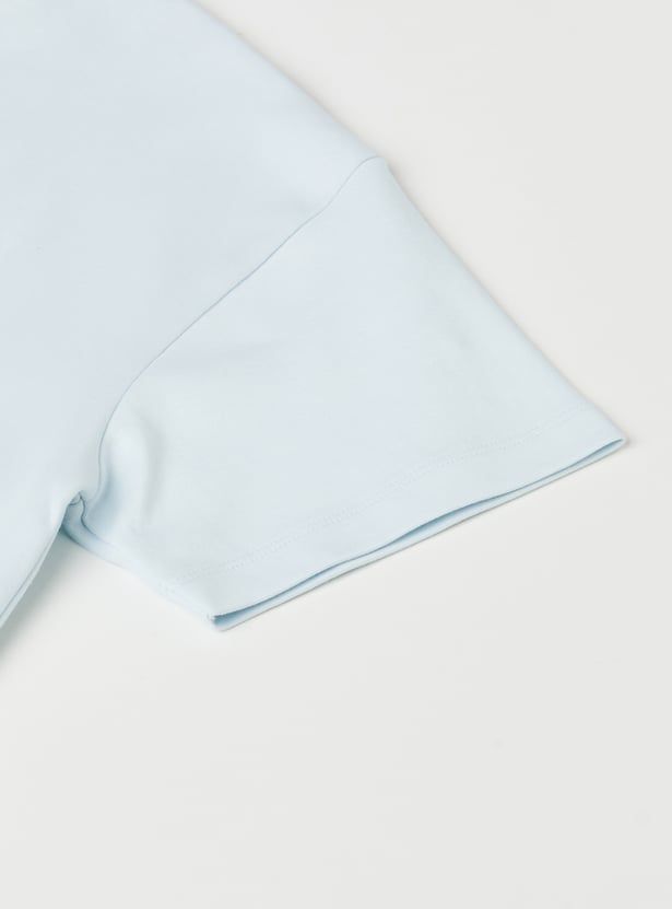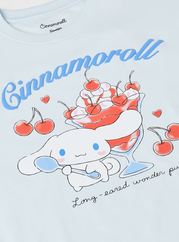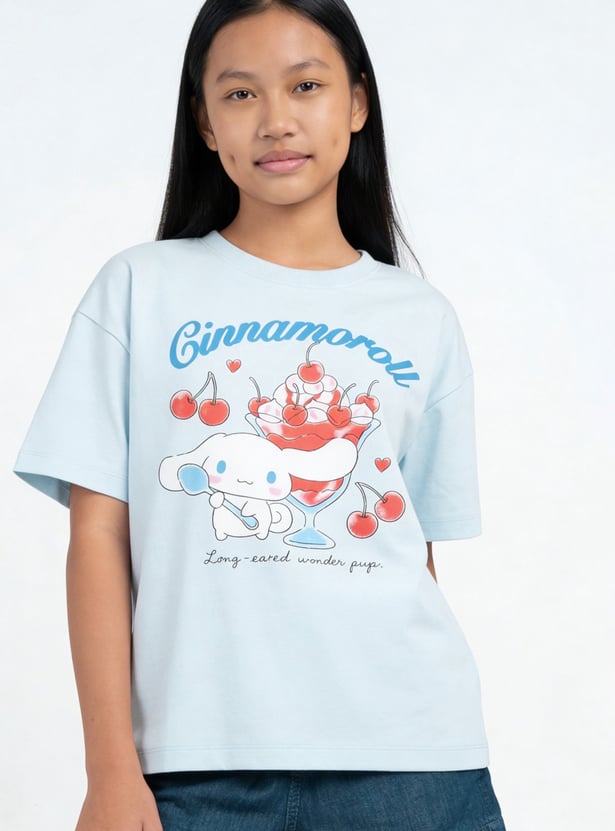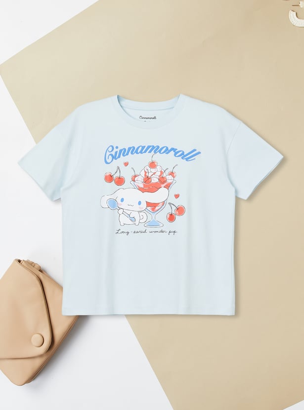 Soft, sweet, and cool, this T-shirt brings playful charm to everyday style. Designed with a classic round neck, half sleeves, and relaxed drop shoulders, it offers an easy, oversized fit for all-day comfort. The adorable Cinnamoroll print adds a fun, standout touch to this comfy essential.