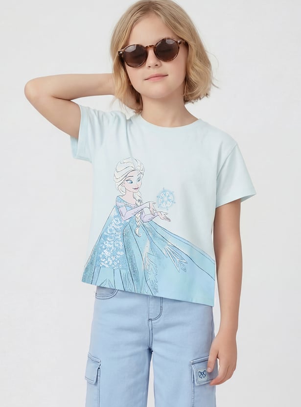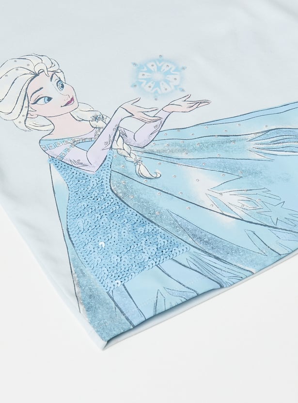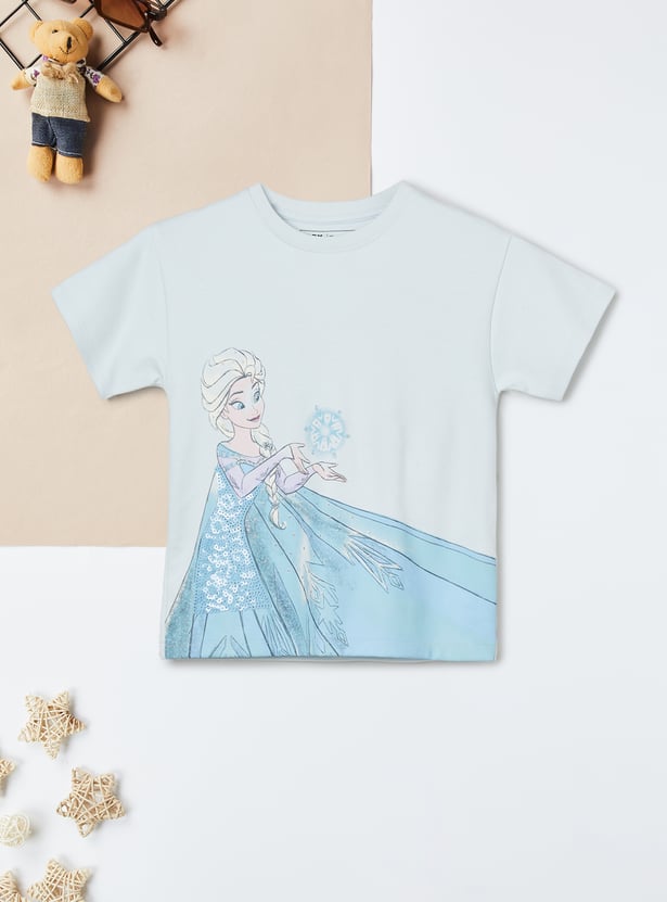 Add a magical touch to her everyday wardrobe with this oversized Elsa T-shirt. Designed with a round neck and half sleeves for comfortable wear, it features an Elsa print for a fun character-inspired look.