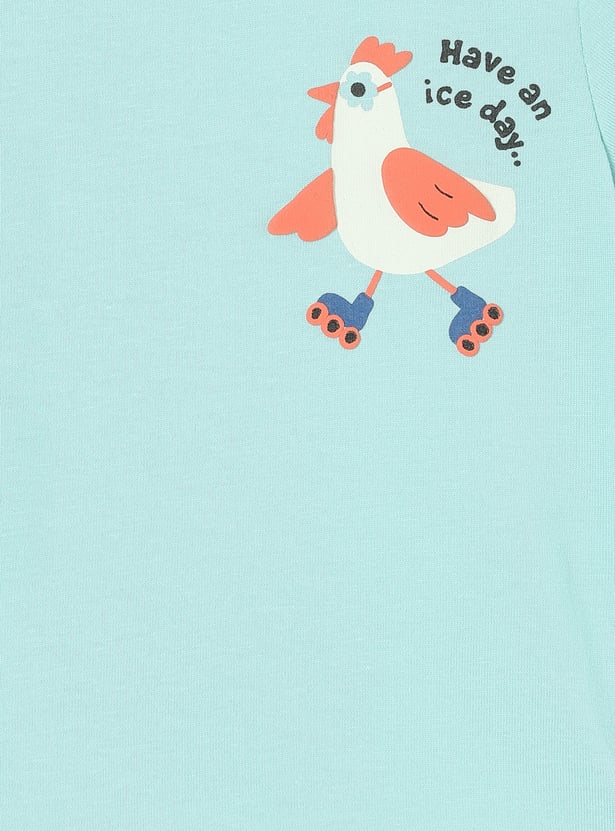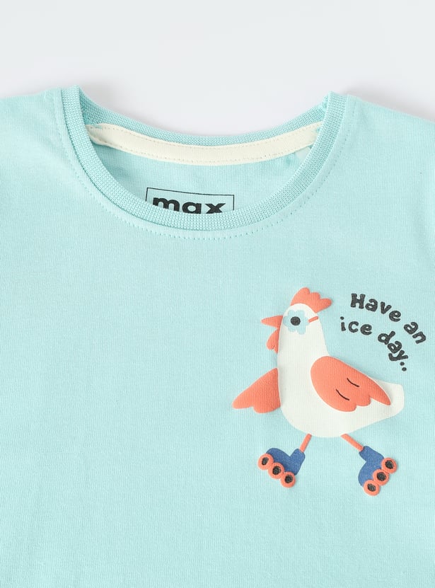 Get your little one vacation-ready with this stylish T-shirt. Featuring a cool placement print, half sleeves, and a classic round neck, this tee combines comfort with a laid-back vibe that’s perfect for sunny getaways.