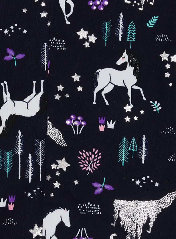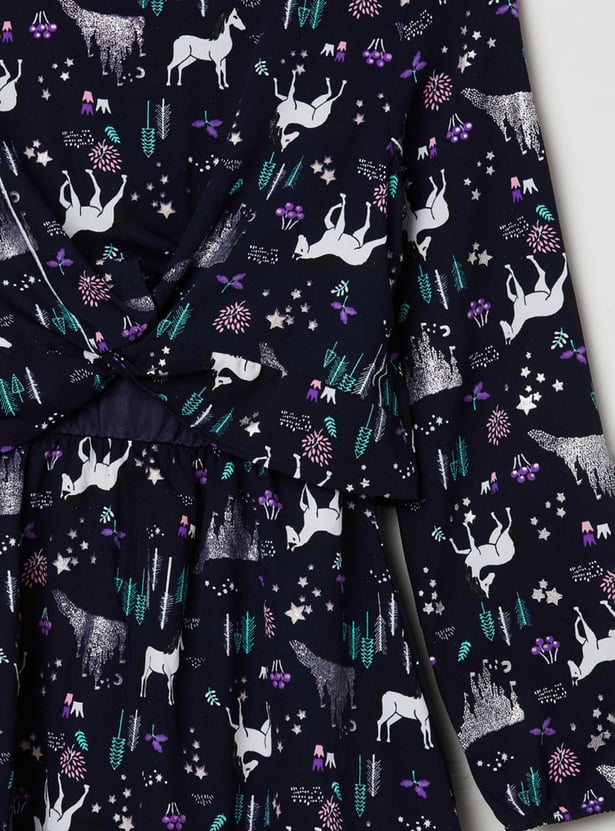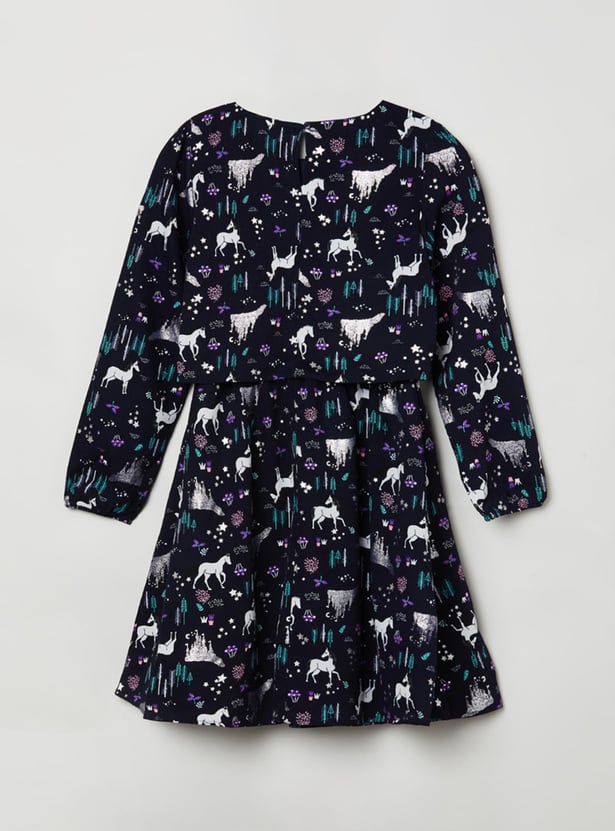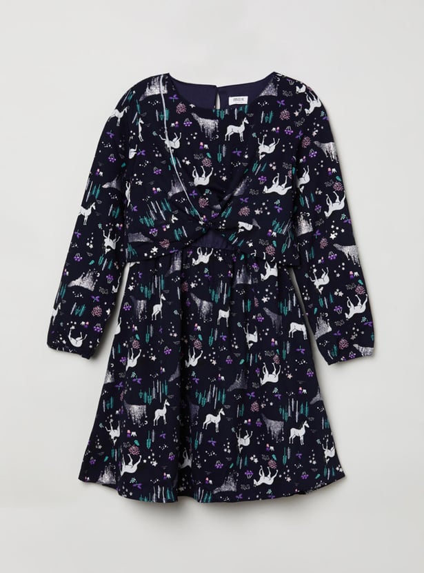 Enhance your child's presence this festive season with this printed dress. The dress is designed with a round neck and long sleeves.