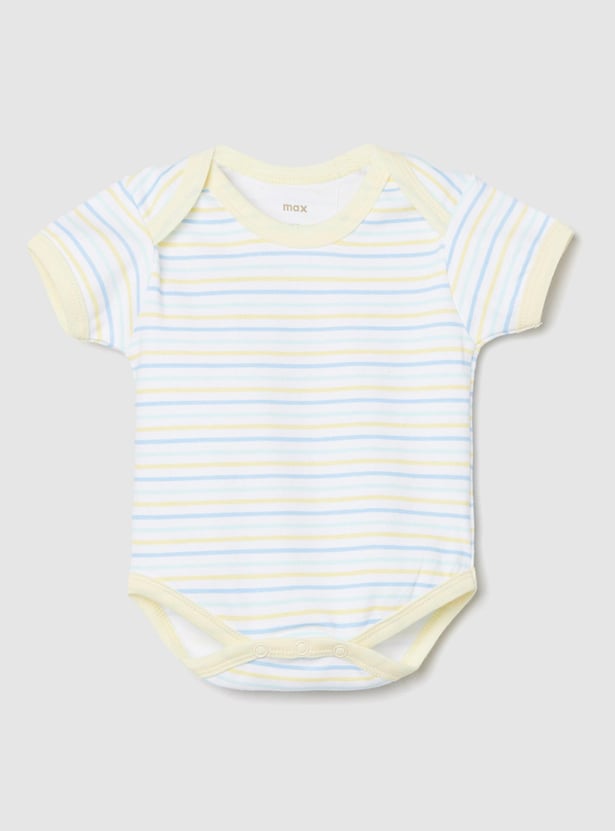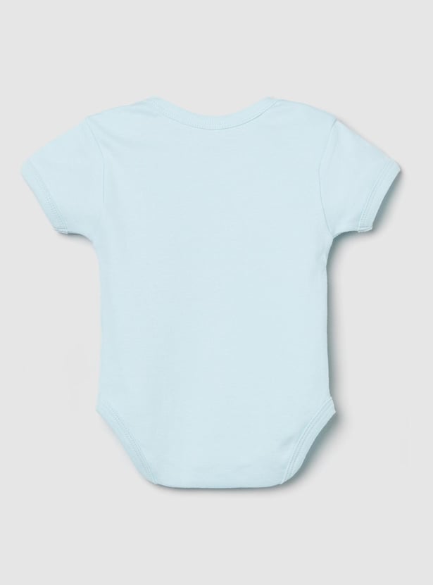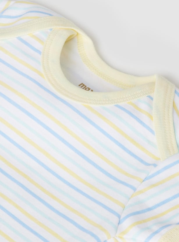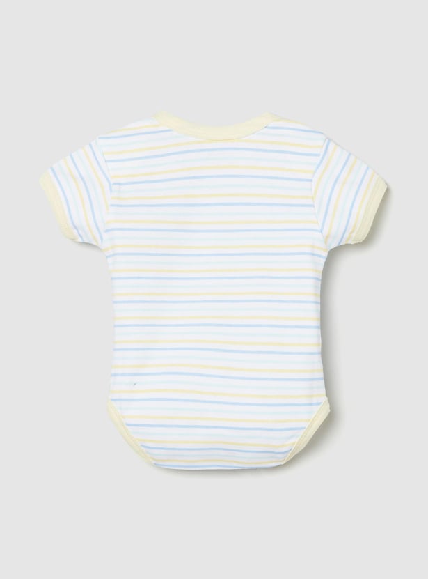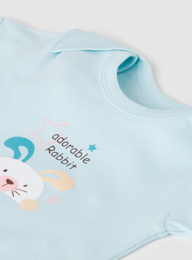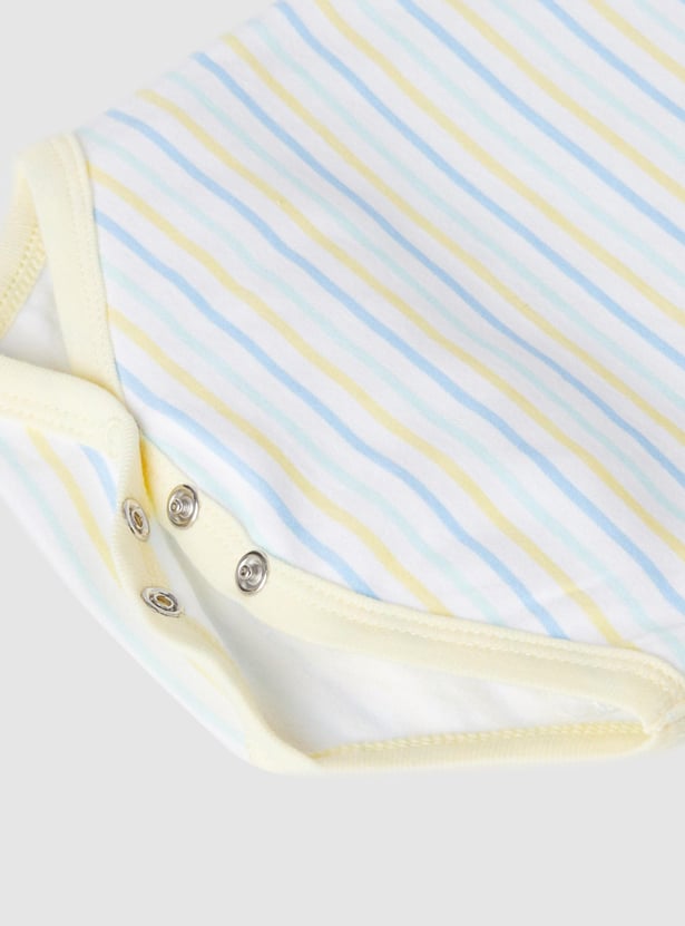 Swaddle your baby in this bodysuit set which is made of an anti-bacterial finish on the fabric. It comes with a printed surface, an envelope neckline, and ring snap closures for easy diaper changes.