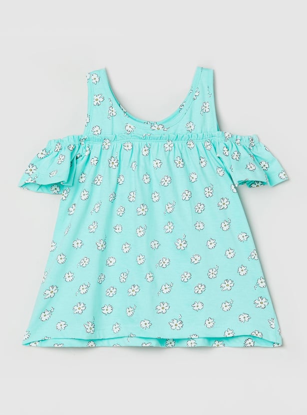 Girls Printed Cold Shoulder Top