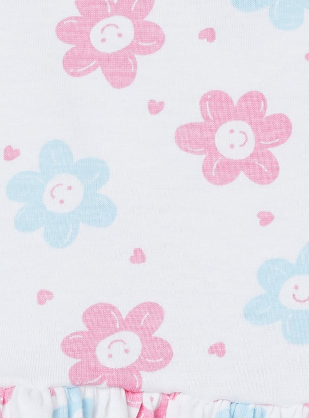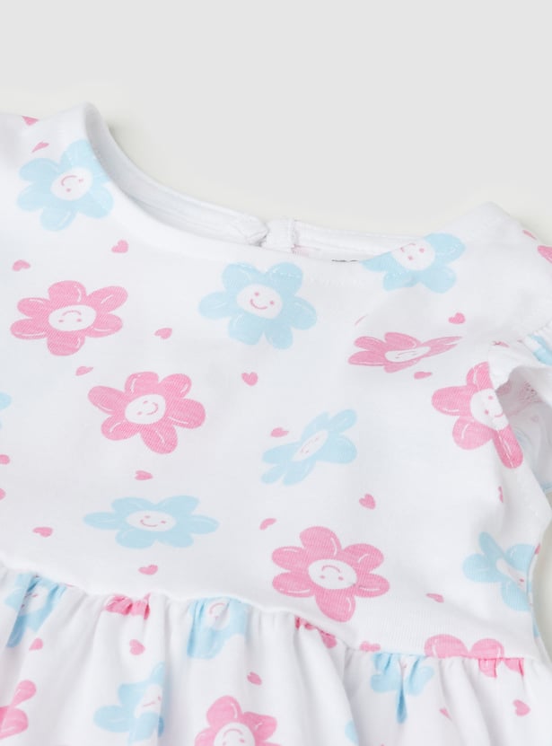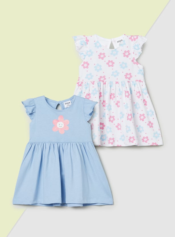 This pack includes two charming printed dresses, each featuring a round neck, sleeveless design, and button closure for easy wear. Lightweight and breezy, they are perfect for everyday comfort.