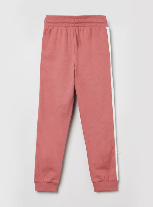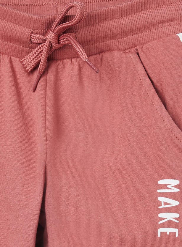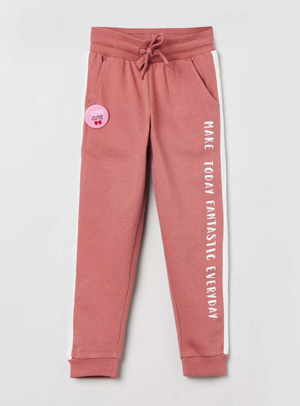 A pair of printed joggers designed with pockets and a drawstring waistband.