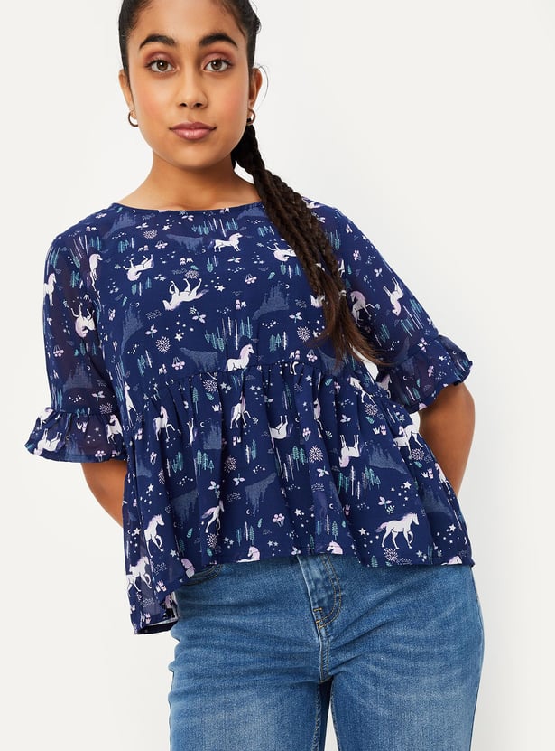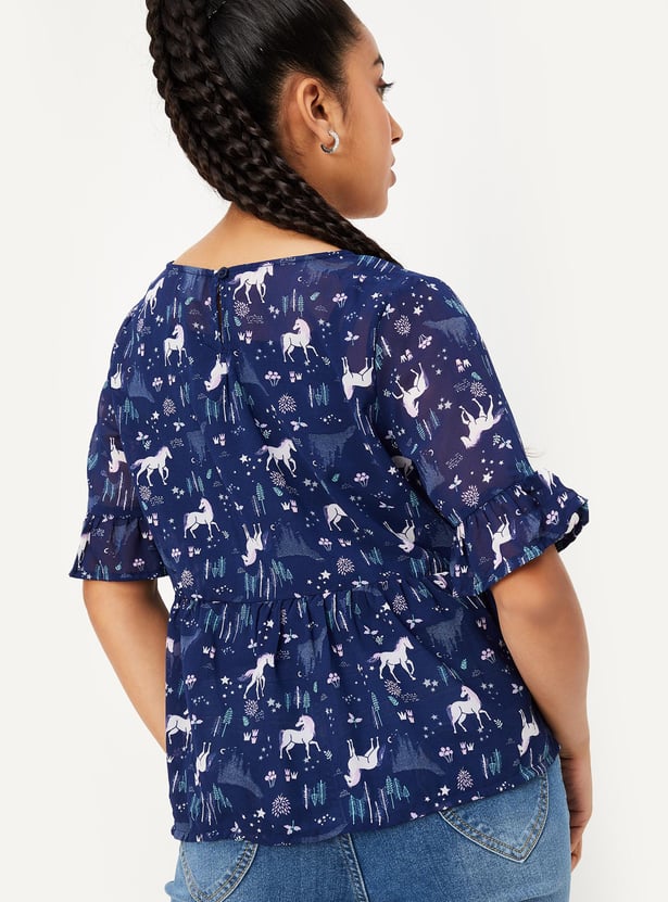 Girls Printed Peplum Top