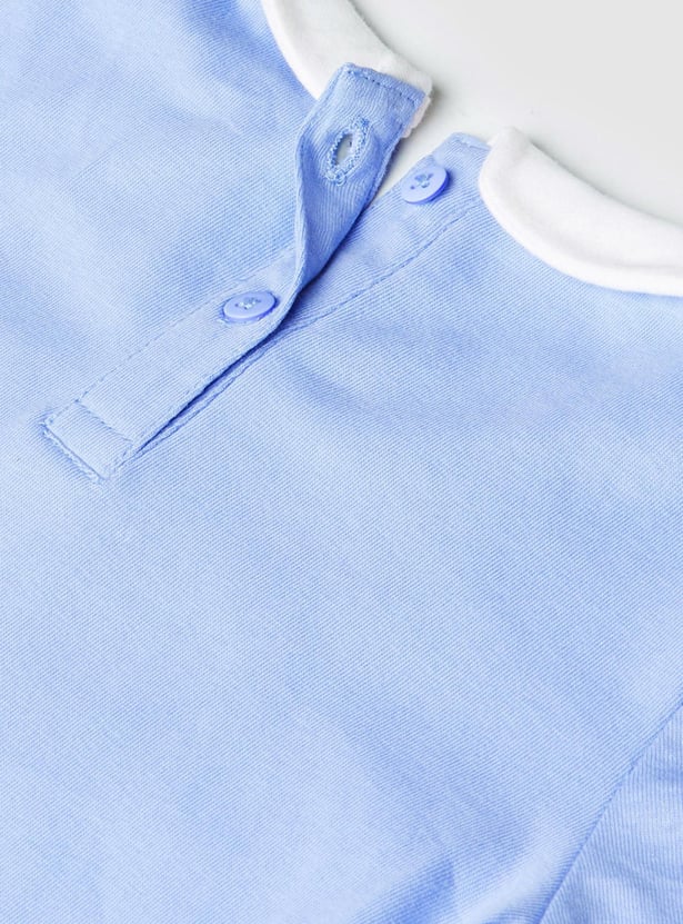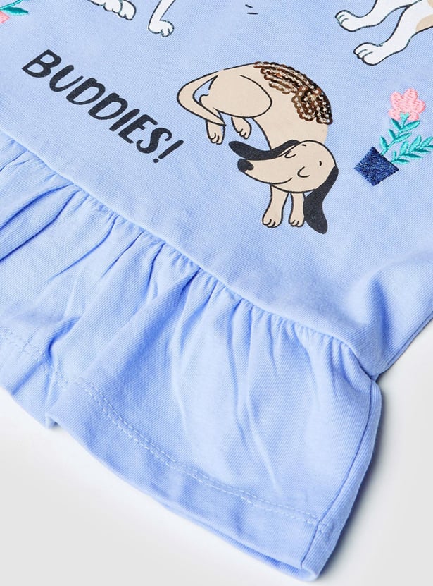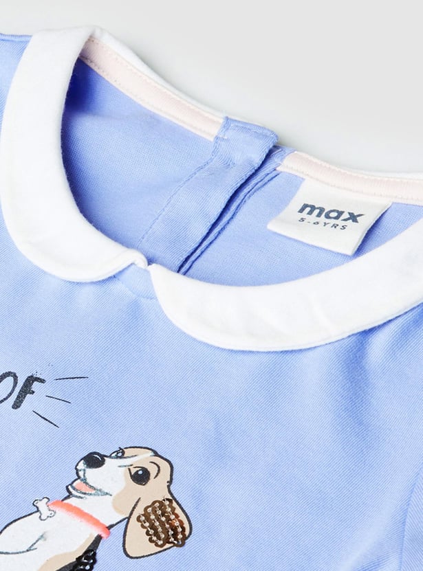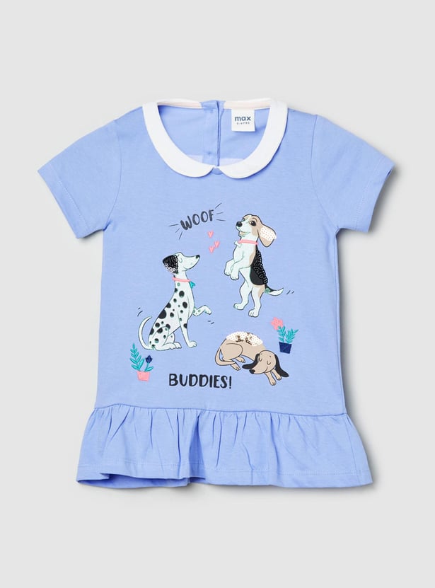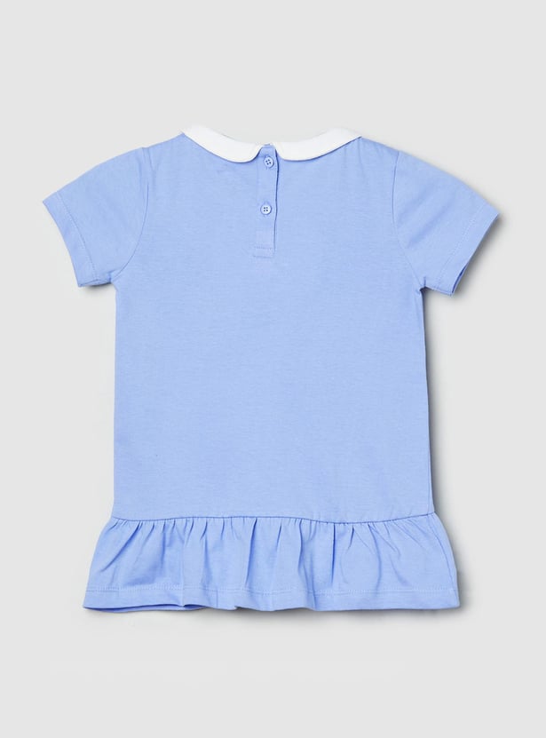 Comfortable and trendy, this printed top with half sleeves and a peter pan collar is all you need to update your child's casual collection.