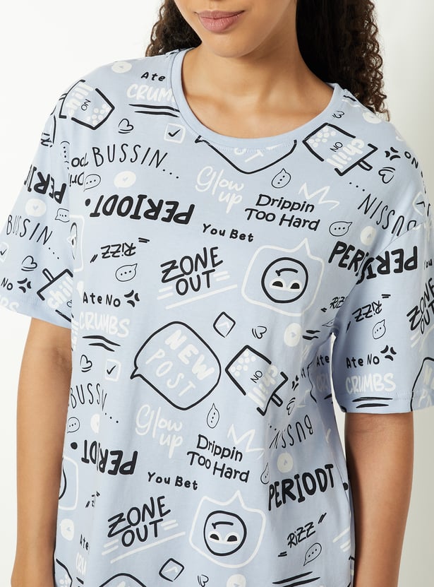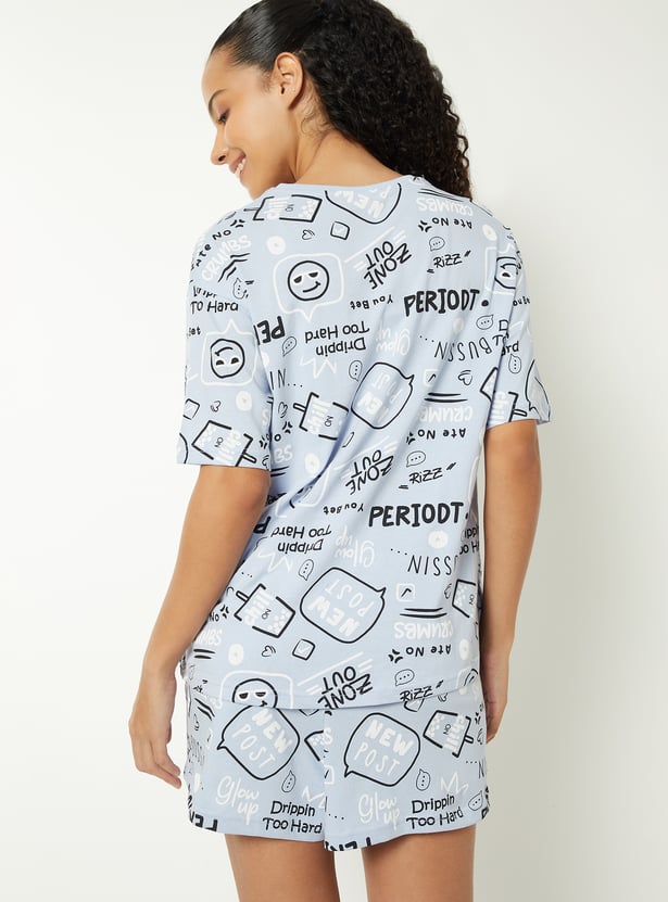 Stay cool and coordinated with this printed shorts set, featuring a crop top with a round neck and half sleeves, paired with matching shorts designed with a drawstring closure and handy pockets. Perfect for relaxed days or good night sleep.