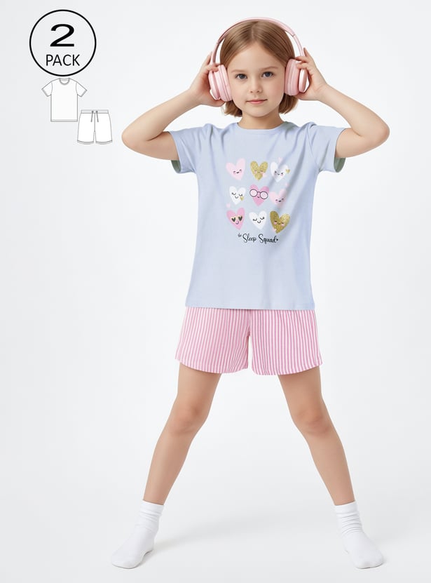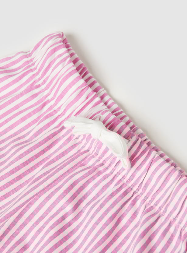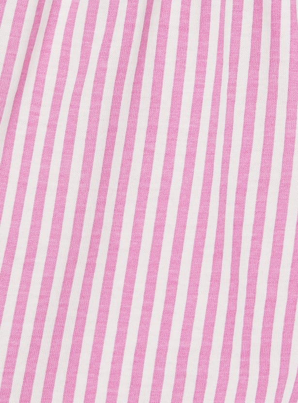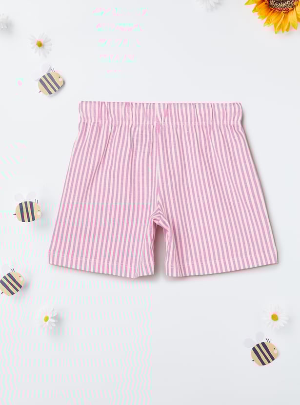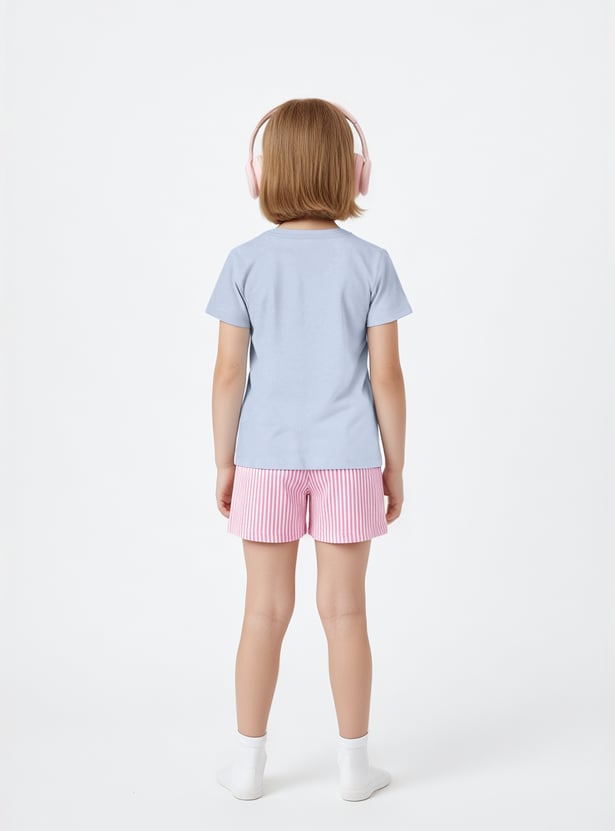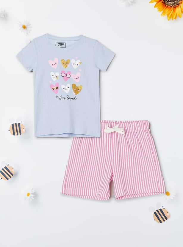 Stay comfortable and stylish with this shorts set, featuring a printed t-shirt with a classic round neck and half sleeves for a relaxed fit. The striped shorts with drawstring closure offer an adjustable and secure fit, making this set perfect for casual outings or lounging at home.