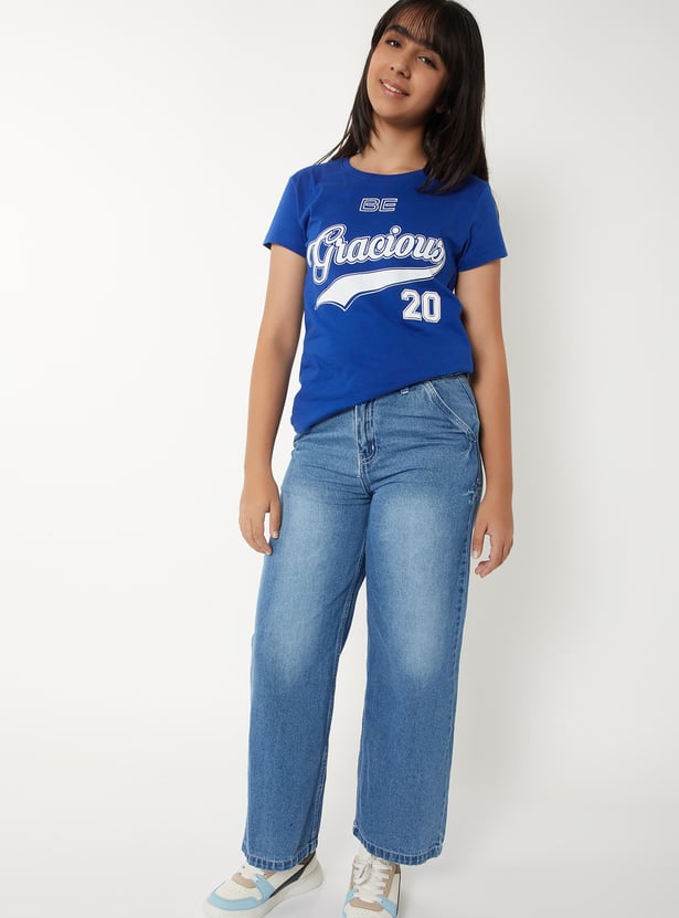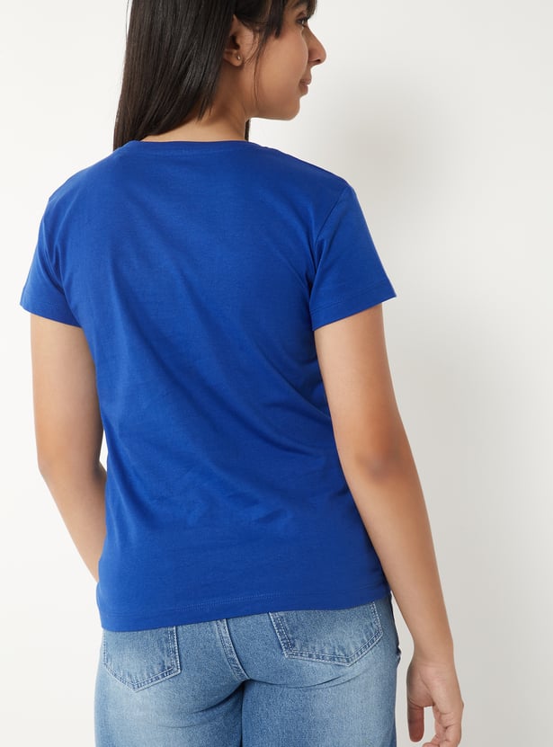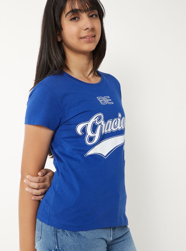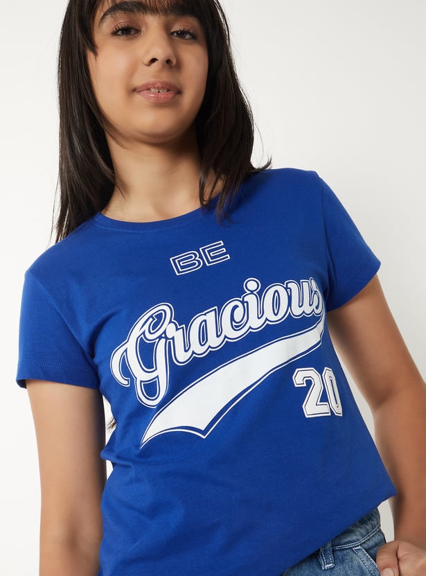 This printed T-shirt brings a pop of personality to your everyday wardrobe. Designed with a classic round neck and half sleeves, it offers casual comfort with standout style