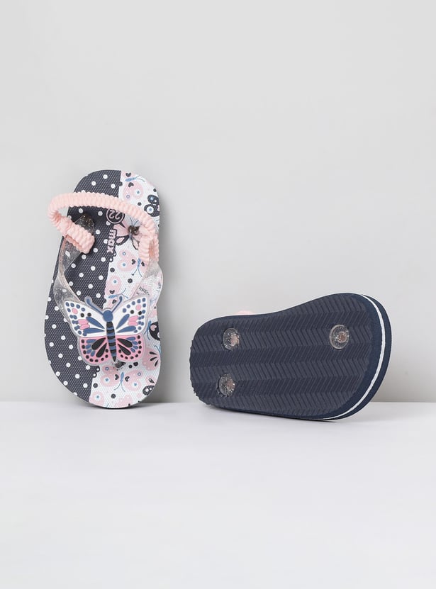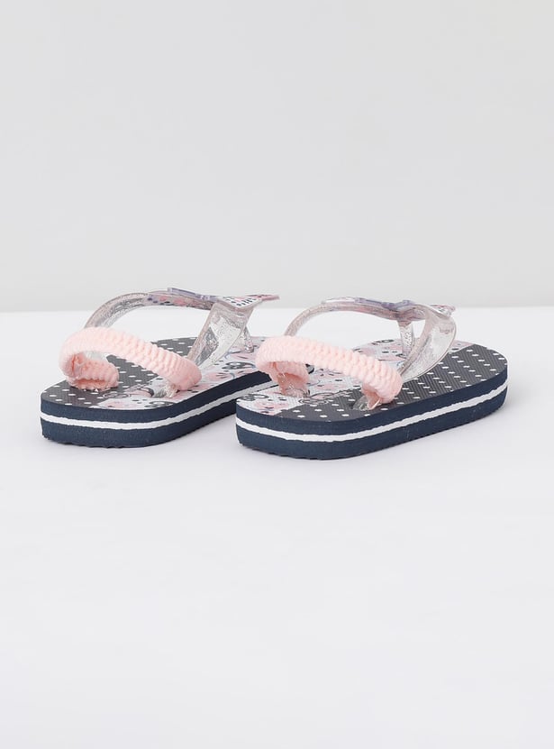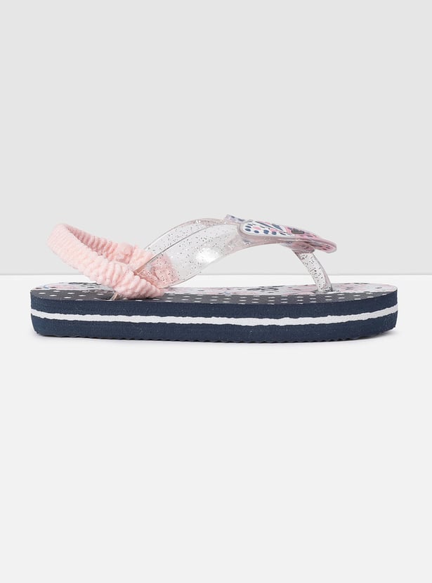Designed with a printed surface, this pair of slippers features slingback construction, an open-toe design, comfortable straps, and cushioned footbed.