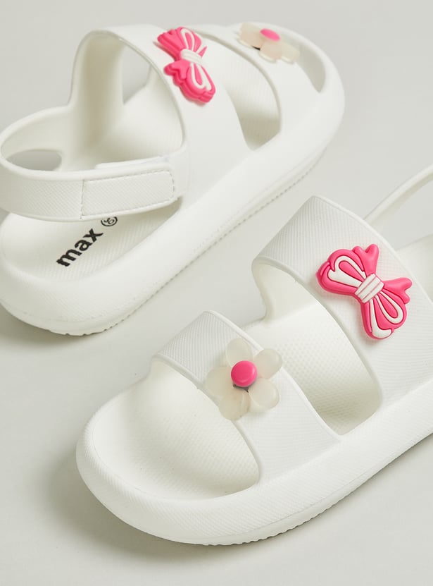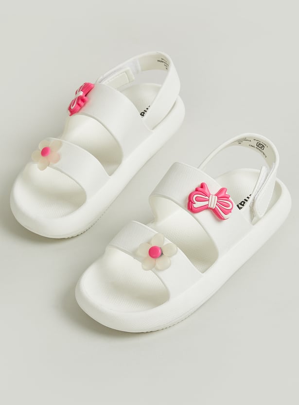 These sandals with charms bring playful personality to a classic design. Featuring a sling backstrap for added support and comfort, they combine practicality with fun, customizable charm accents.