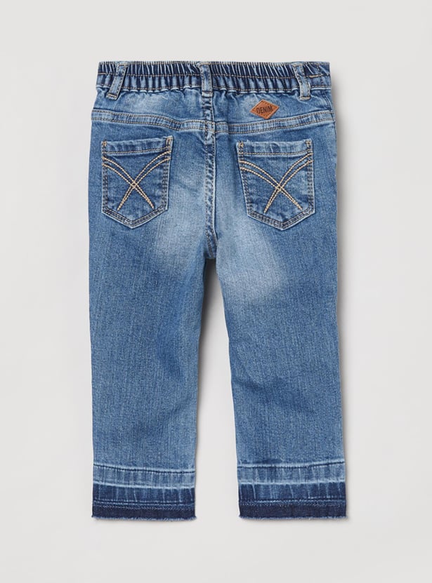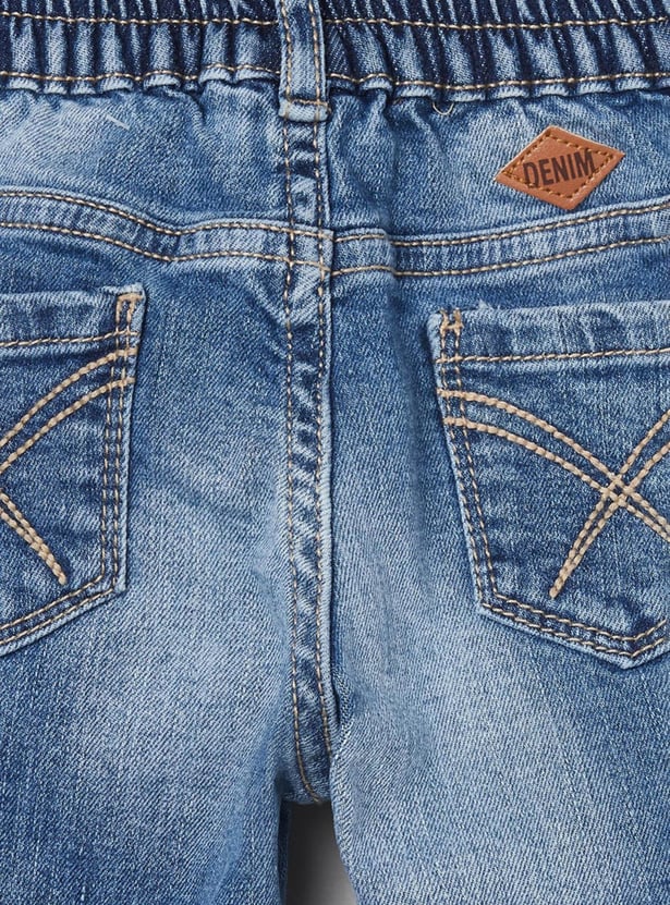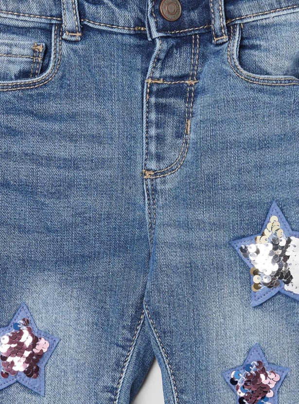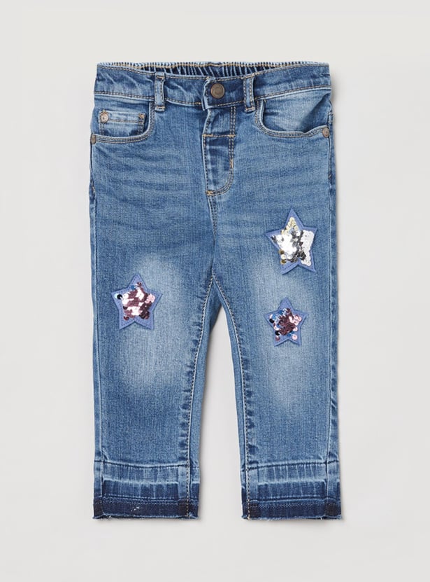 This pair of slim-fit jeans are designed with an applique sequinned detail, insert pockets, an elasticated waistband, and belt loops to amp up the casual ensemble.