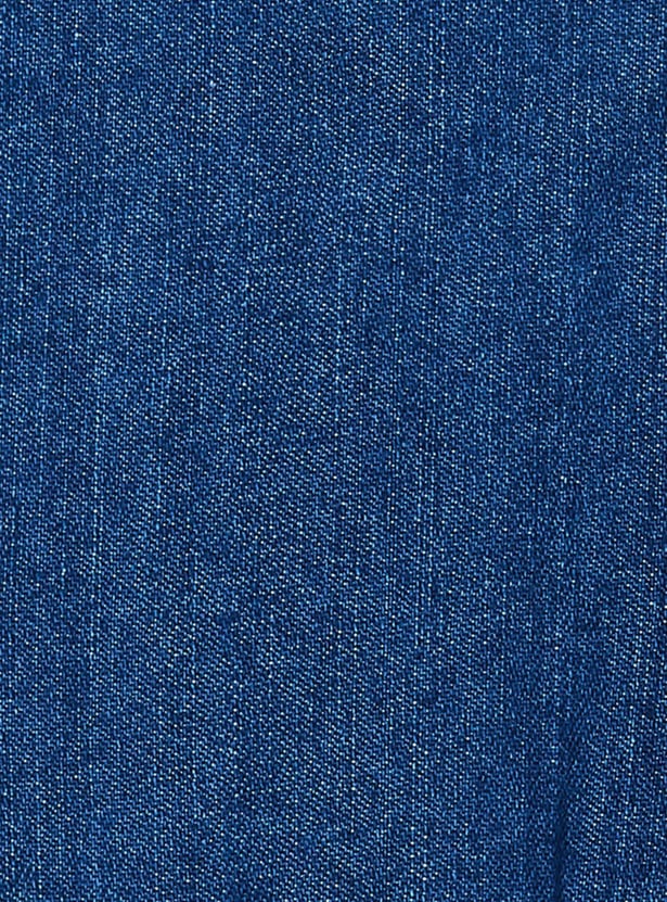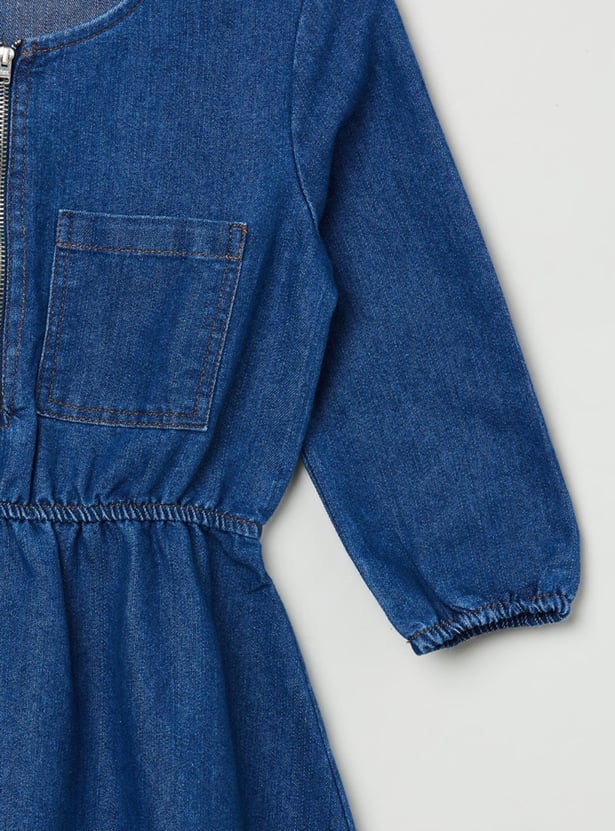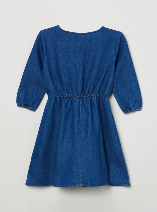 Girls Solid A-Line Denim Dress
