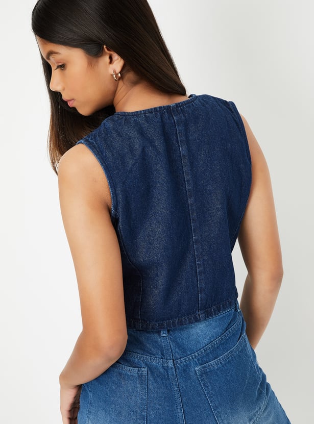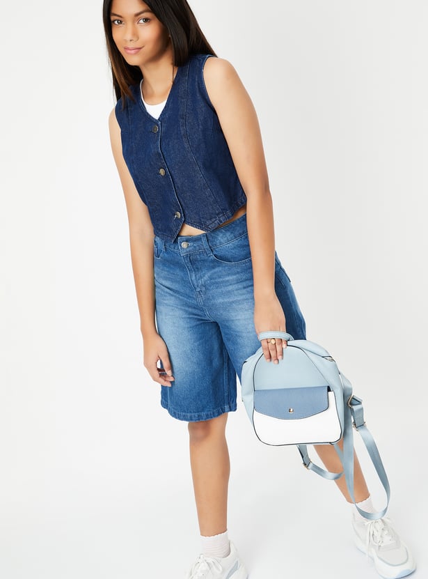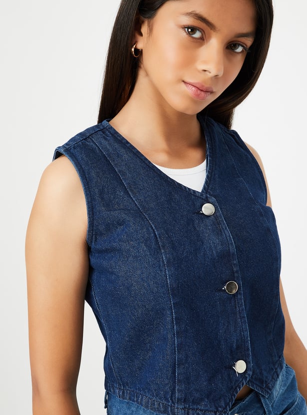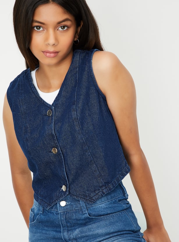 Girls Solid Denim Waistcoat